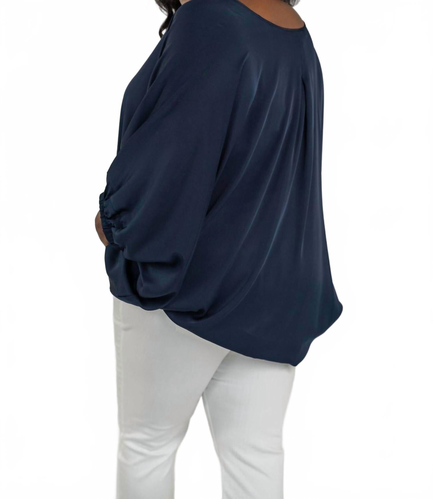 Блузка Austin с V-образным вырезом от Nouvelle / Silk95five - шикарное дополнение к любому гардеробу, особенно в изысканном темно-синем цвете. Эта женская блузка из 100% шелка отличается однотонным кроем, создающим элегантный и изысканный образ. Длинные рукава можно регулировать от фасона «баллон» до фасона «летучая мышь» 3/4 для универсальности. Эту блузку plus-size можно стирать в стиральной машине, что делает ее практичной как для летнего офиса, так и для праздничных вечеринок.