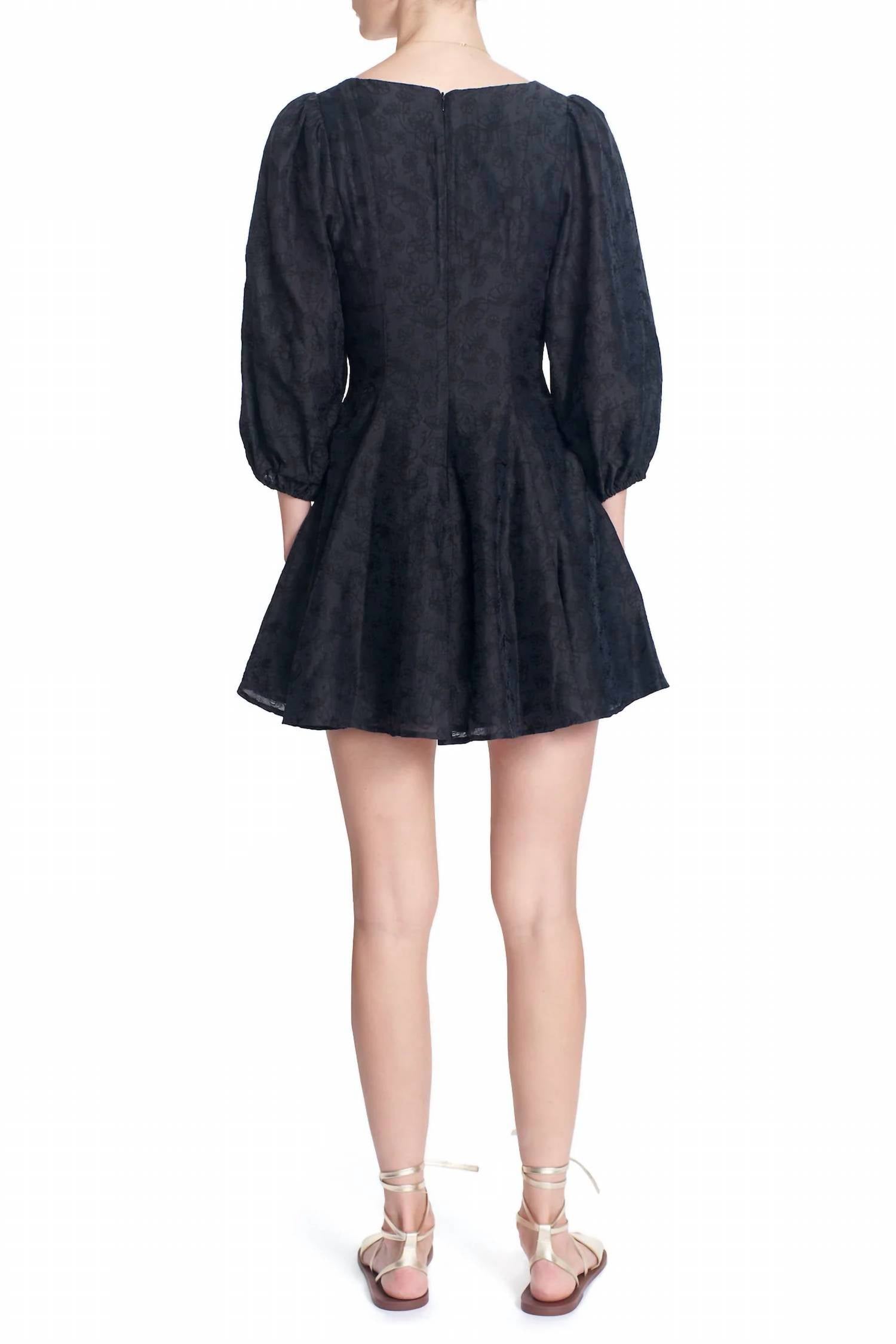 Свободное и элегантное платье, которое вы будете носить круглый год. Представляем мини-платье Odette от COREY LYNN CALTER - шикарное дополнение к вашему гардеробу благодаря женственному и кокетливому дизайну. Платье с рукавами три четверти и квадратным вырезом, подчеркивающим фигуру, выполнено из роскошной смеси 80% тенселя и 20% нейлона. Плотный черный жаккардовый материал с цветочным рисунком обеспечивает плотное прилегание и застегивается на удобную молнию. Платье идеально подходит для любого случая и оснащено подкладкой для дополнительного комфорта.