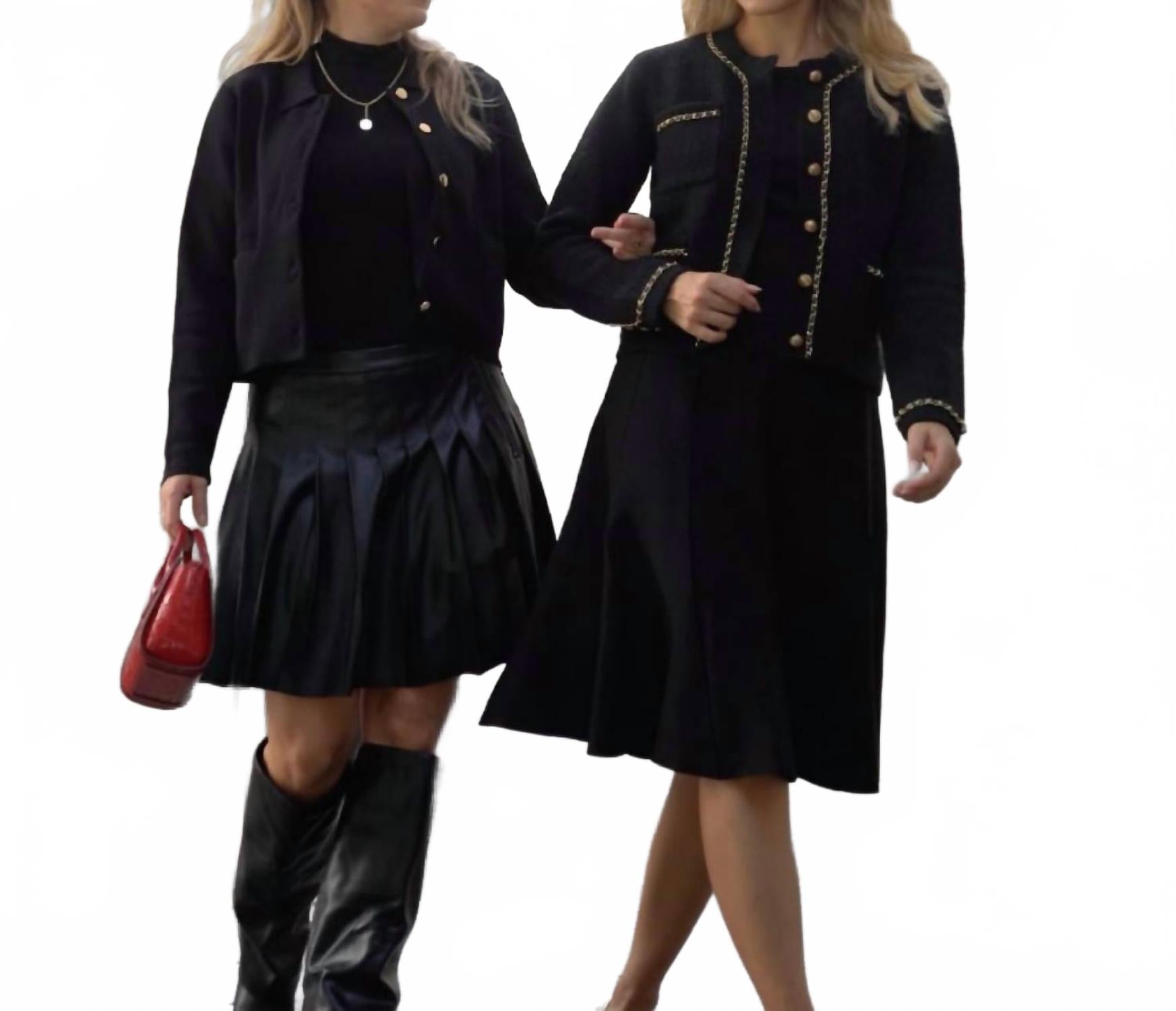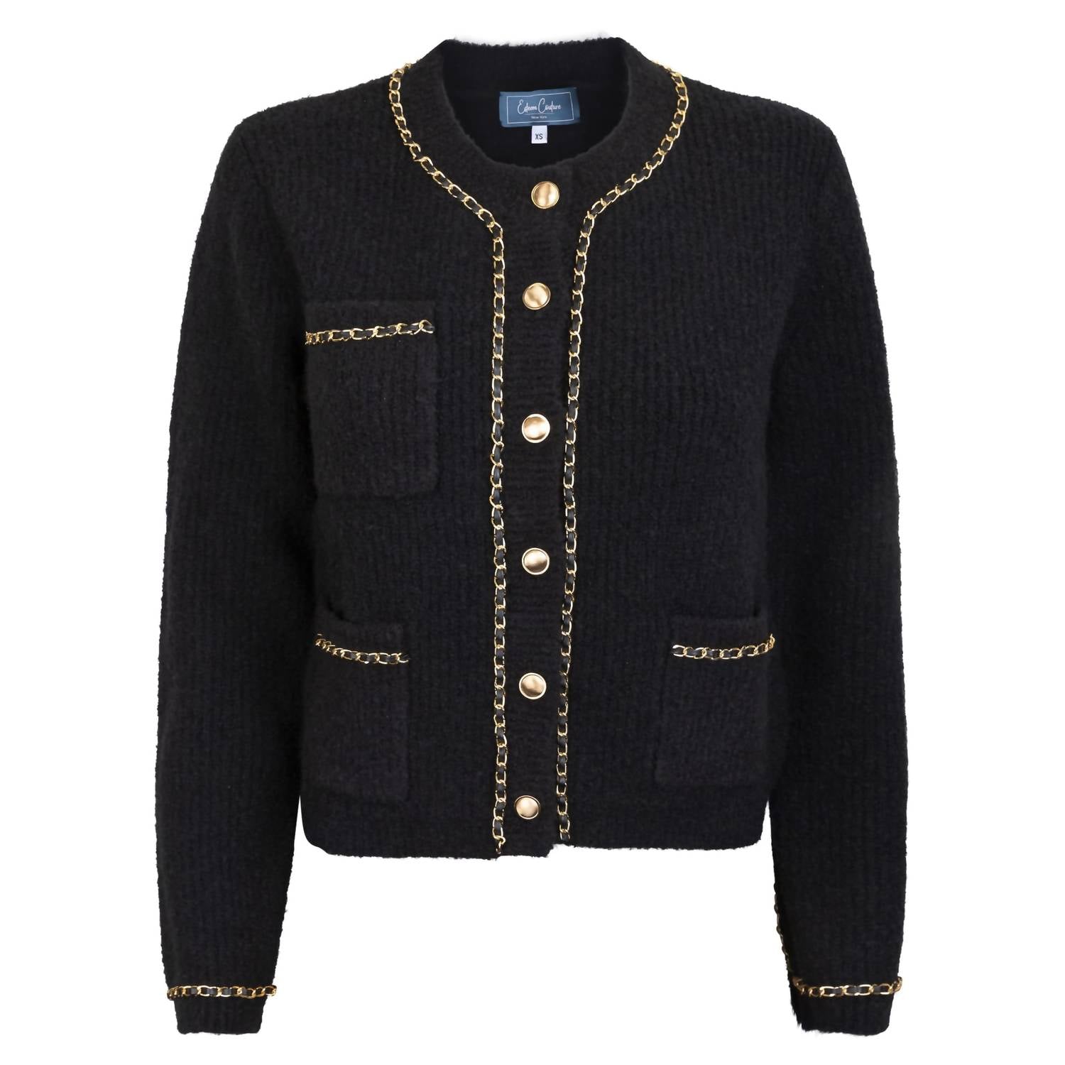 Повседневная, но стильная куртка, которая должна быть в каждом гардеробе. Представляем куртку Caroline Knit от Esteem Couture - шикарное дополнение к вашему гардеробу в классическом черном цвете. Эта куртка с длинными рукавами выполнена из высококачественного трикотажа и украшена элегантными золотыми цепочками, придающими ей нотку роскоши. Застежка на пуговицы, облегающий силуэт и круглый вырез - идеальный вариант для сезонной носки. Эта фактурная куртка без подкладки идеально подойдет для празднования Нового года или любой другой праздничной вечеринки.