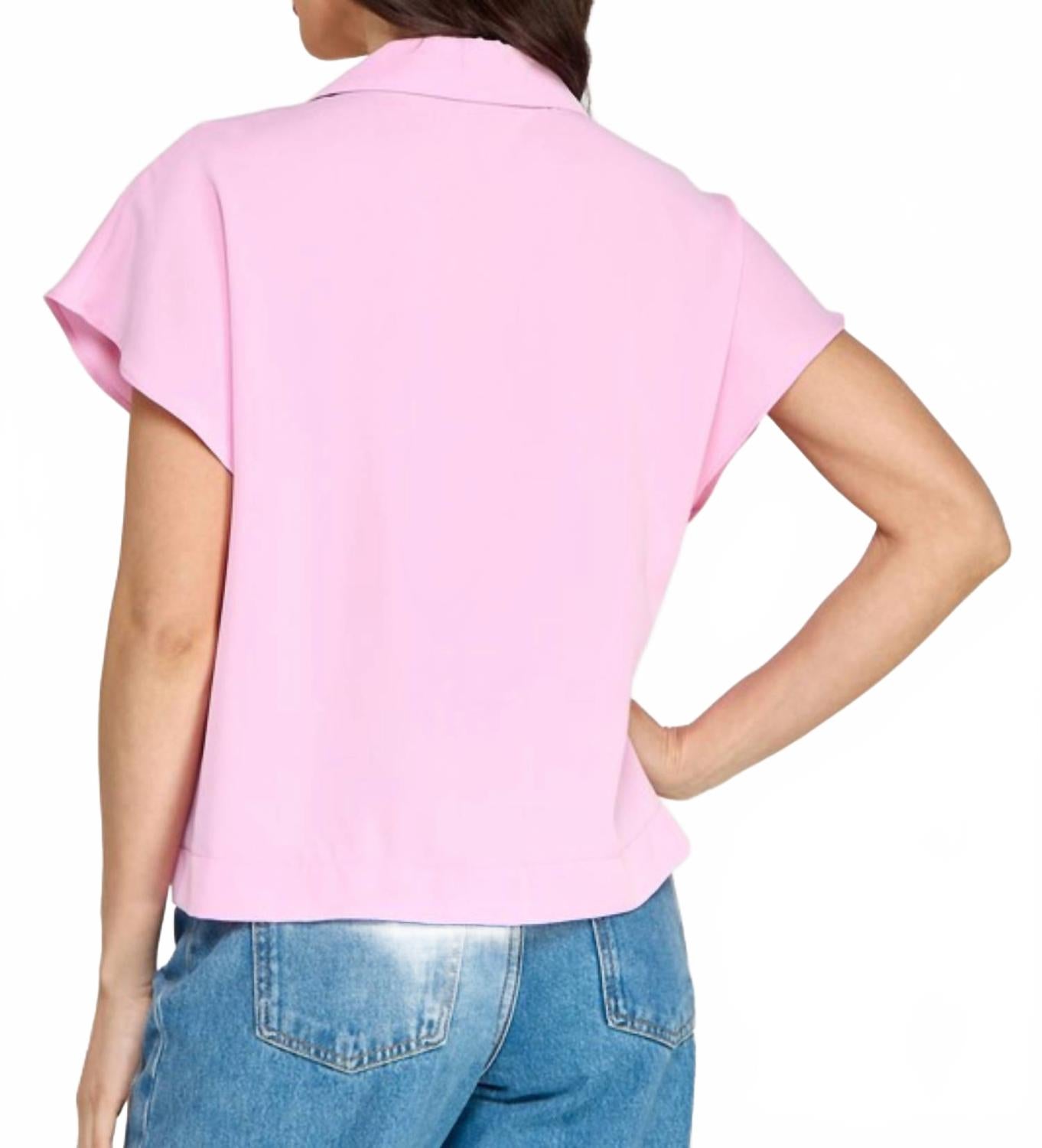 Блузка на все времена, которая никогда не выйдет из моды. Представляем топ Benton Button Down Top от Michel - роскошный вариант в восхитительном розовом оттенке. Благодаря коротким рукавам и классическому воротнику, эта блузка дополнена аккуратной застежкой на пуговицы, что создает элегантный и деловой образ. Благодаря однотонному узору она идеально подойдет как для летнего рабочего гардероба, так и для элегантного образа для отпуска. Идеальный вариант для тех, кто ищет консервативный, но стильный образ, - это универсальное дополнение к любой коллекции.