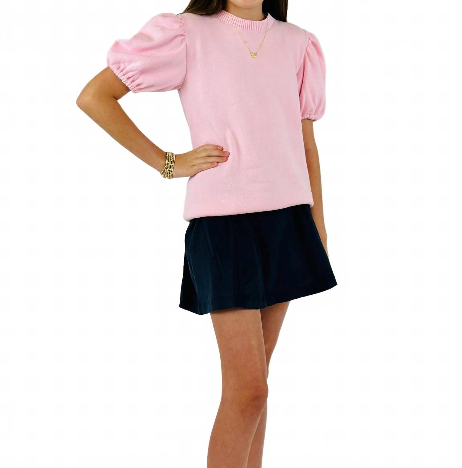 Откройте для себя блузку-свитер Girl's Jane от Set Proper в цвете Pleasant Pink - восхитительное дополнение к вашему весеннему гардеробу. Эта блузка с однотонным узором и очаровательными рукавами-буфами имеет шикарный силуэт, подходящий для самых разных случаев: от повседневных прогулок до школьных мероприятий. Место производства неизвестно, но блузка прекрасно сочетается как с джинсами, так и с юбками, создавая стильный и элегантный образ. Хотя особых рекомендаций по уходу нет, эта уютная и универсальная вещь обязательно очарует любую юную модницу.