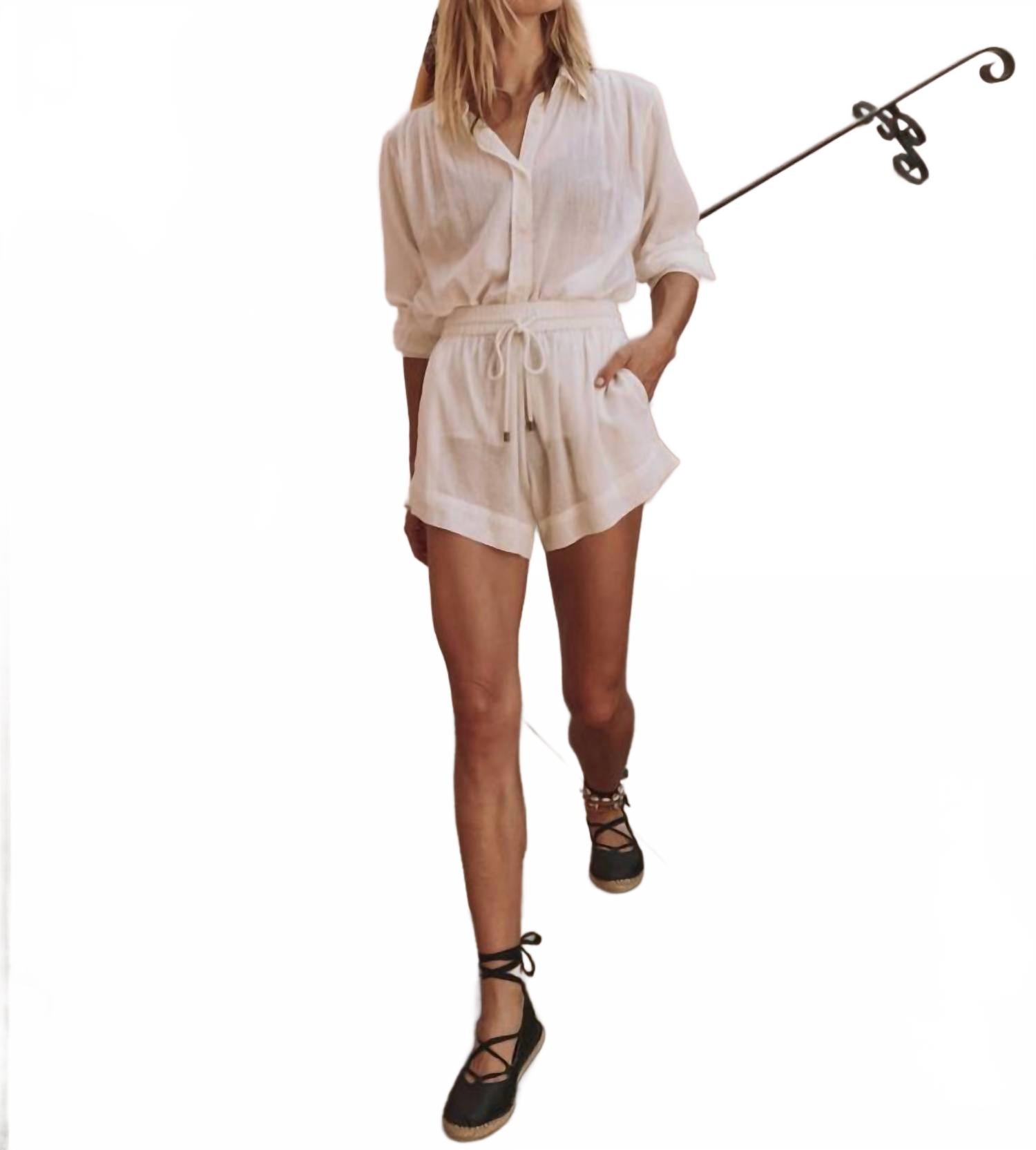 Эти шорты с высокой талией сидят идеально, нам они тоже очень нравятся, и вам тоже. Встречайте шорты Delta Short от THE GREAT - идеальный предмет гардероба для отпуска в классическом белом цвете. Эти пляжные шорты с низкой талией и однотонным узором скроены на резинке и затягиваются на тонкий шнурок для удобной посадки. Изготовленные из 100% хлопка, эти воздушные и полупрозрачные хлопковые шорты гарантируют непринужденный стиль. Импортные и простые в уходе: стирать в стиральной машине в холодной воде и сушить в стиральной машине при низкой температуре.