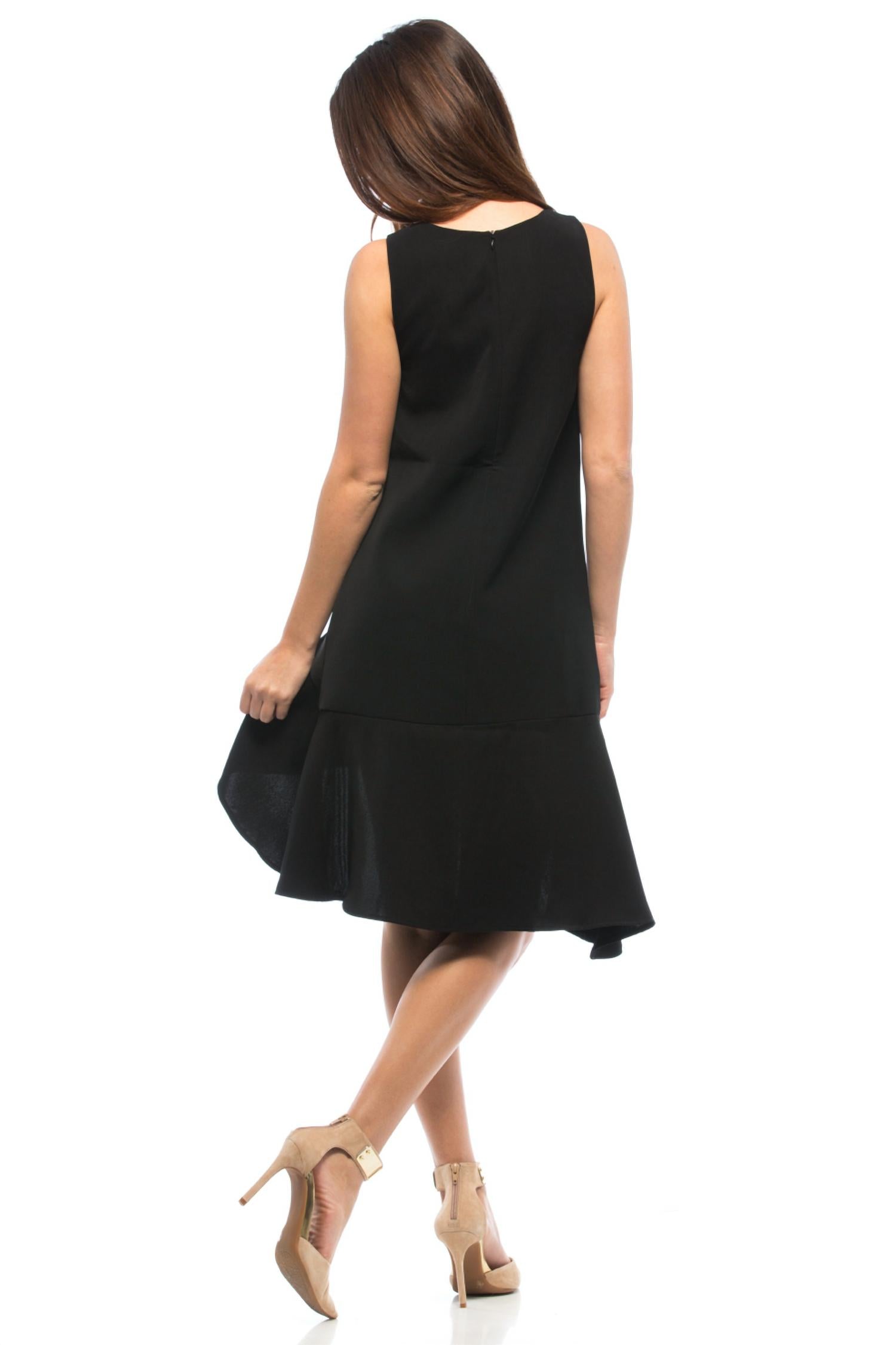 Короткое и воздушное платье для теплых дней. Представляем платье Easy Love от C/MEO Collective - элегантный и непринужденный выбор для вашего следующего вечернего мероприятия. Это мини-платье без рукавов однотонного черного цвета отличается свободным кроем, заниженной талией и асимметричным оборчатым подолом, придающим образу изысканность. Платье изготовлено из 100% полиэстера, имеет V-образный вырез, удобную застежку-молнию и подкладку для комфорта. Уход за этим стильным платьем: ручная стирка, сушить в разложенном виде на горизонтальной поверхности.
