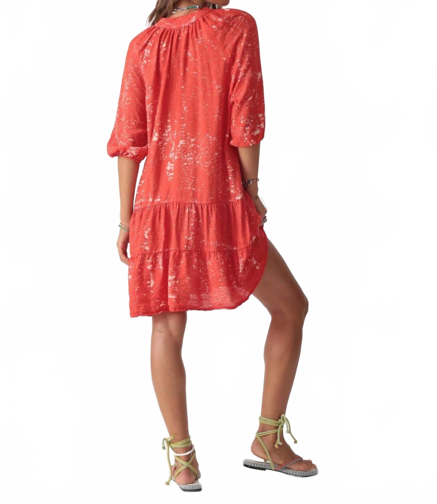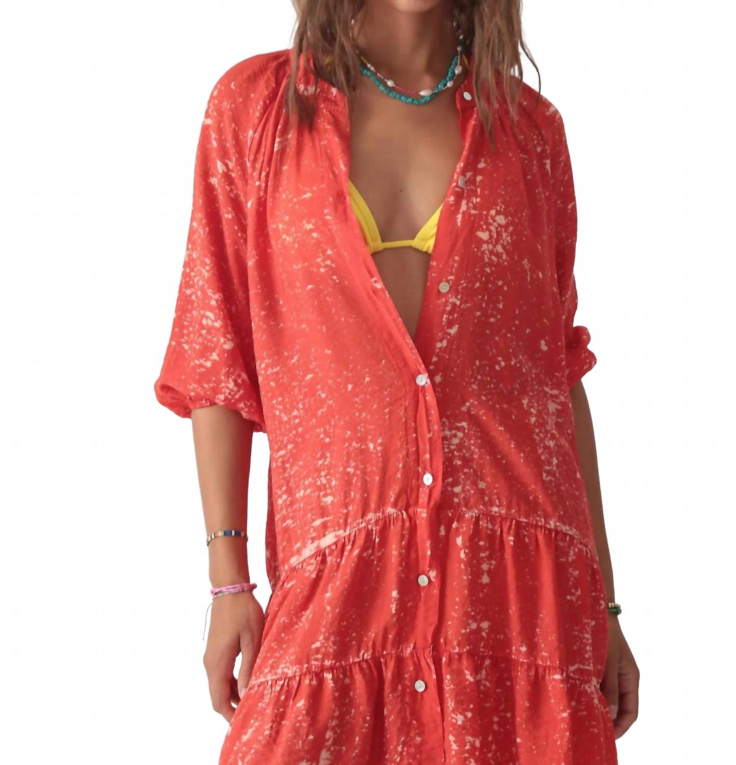 Короткое и воздушное платье для теплых дней. Представляем Clarissa Dress Spray от Electric & Rose - мини-платье цвета чили, которое просто необходимо для летнего отдыха. Элегантные рукава до локтя и стильная многоярусная юбка - это платье рубашечного силуэта, дополненное застежкой на пуговицы-ракушки. Платье изготовлено из 84% вискозы и 16% нейлона и окрашено вручную в Лос-Анджелесе, что гарантирует уникальный вид каждого изделия. Это красивое платье с узором идеально подходит для отпуска и обеспечит комфорт и элегантный стиль для любого случая.