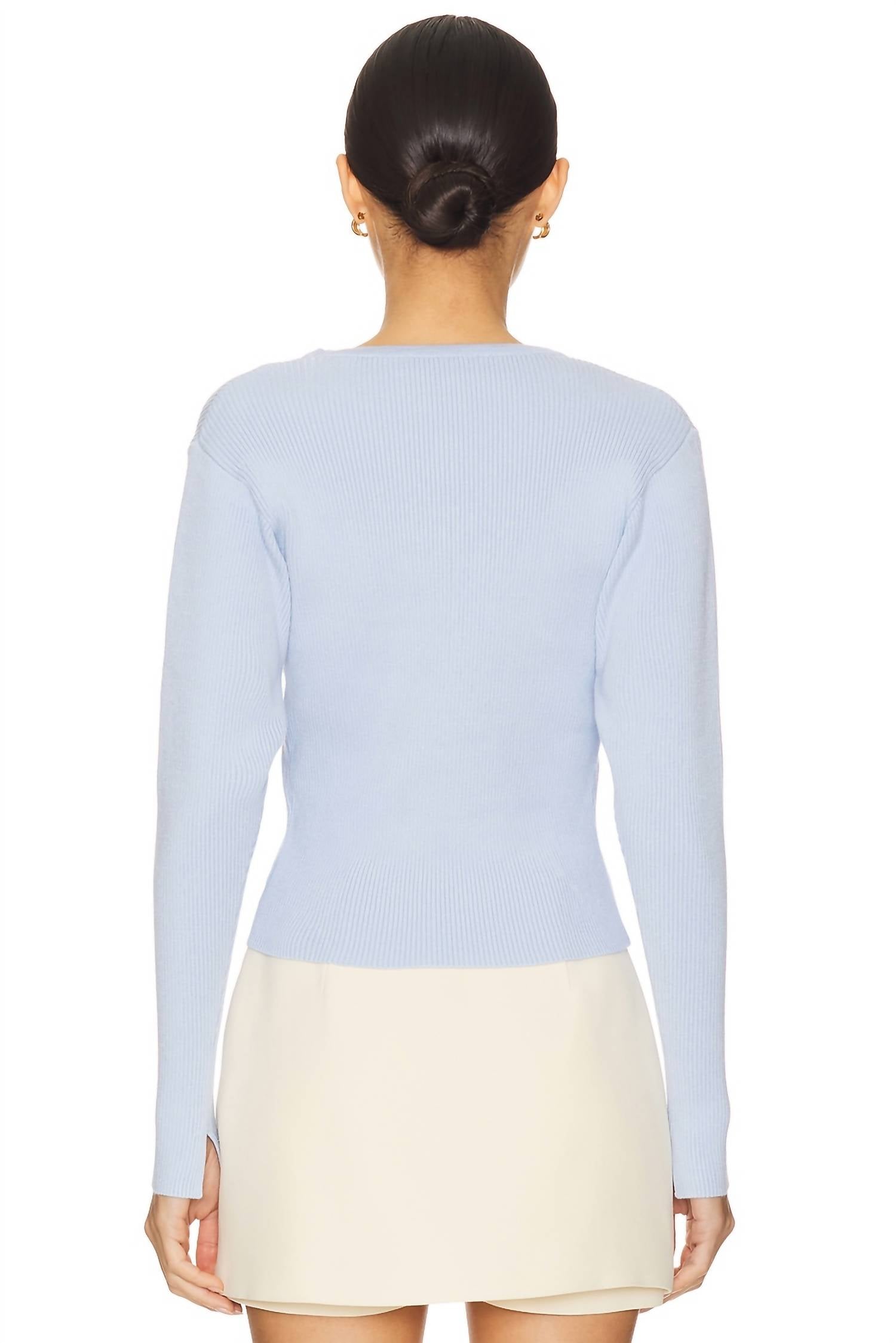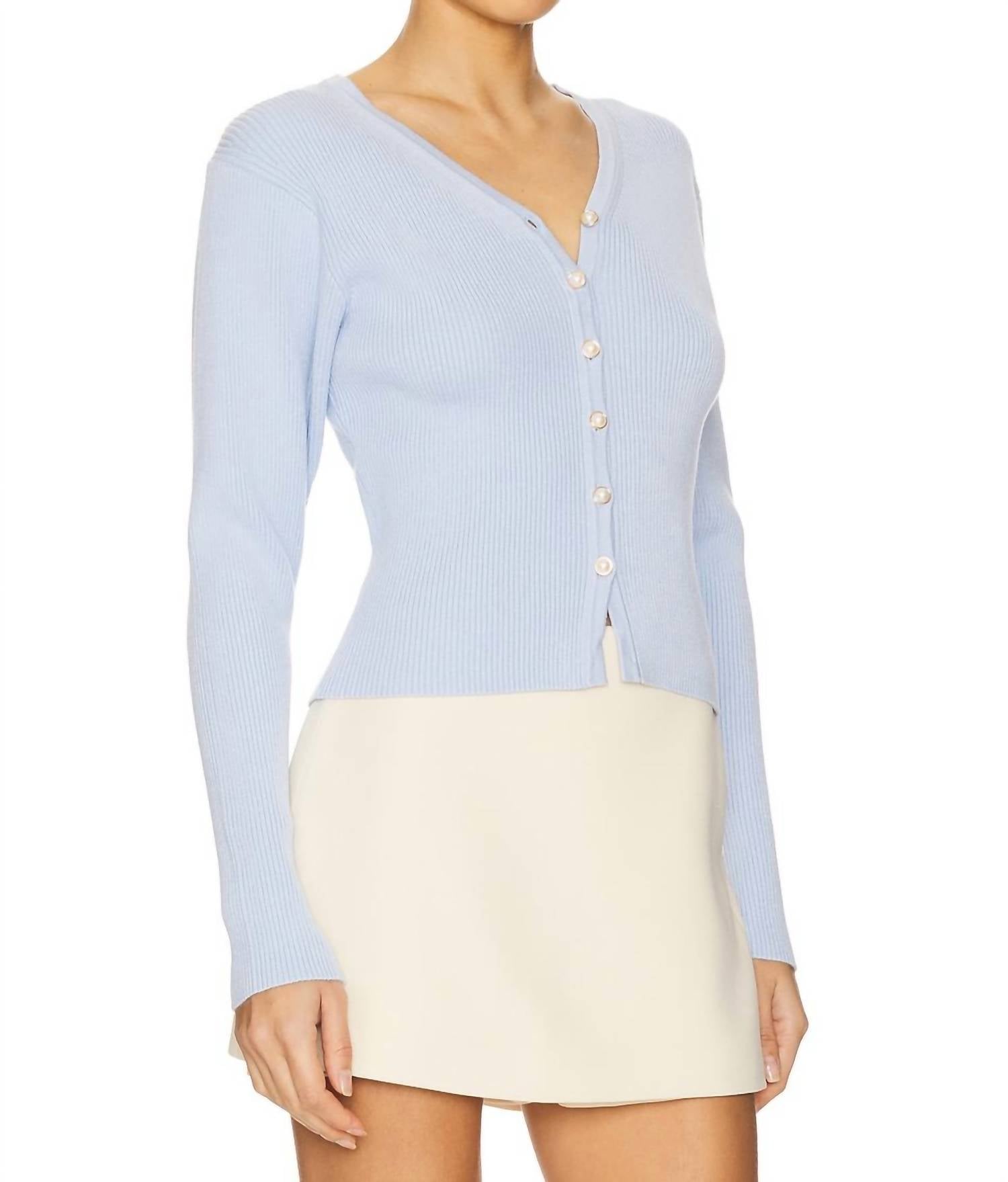 Кардиган ASTR Delynn небесно-голубого цвета с текстурированным кроем и V-образным вырезом без труда воплощает стиль преппи. Кардиган изготовлен из плотного трикотажа в рубчик (70% вискозы и 30% полиэстера), имеет длинные рукава и изысканную золотистую фурнитуру. Кардиган, изготовленный в Китае, застегивается на пуговицы с имитацией жемчуга спереди, что добавляет ему изысканности. Для сохранения идеального состояния допускается только химчистка.