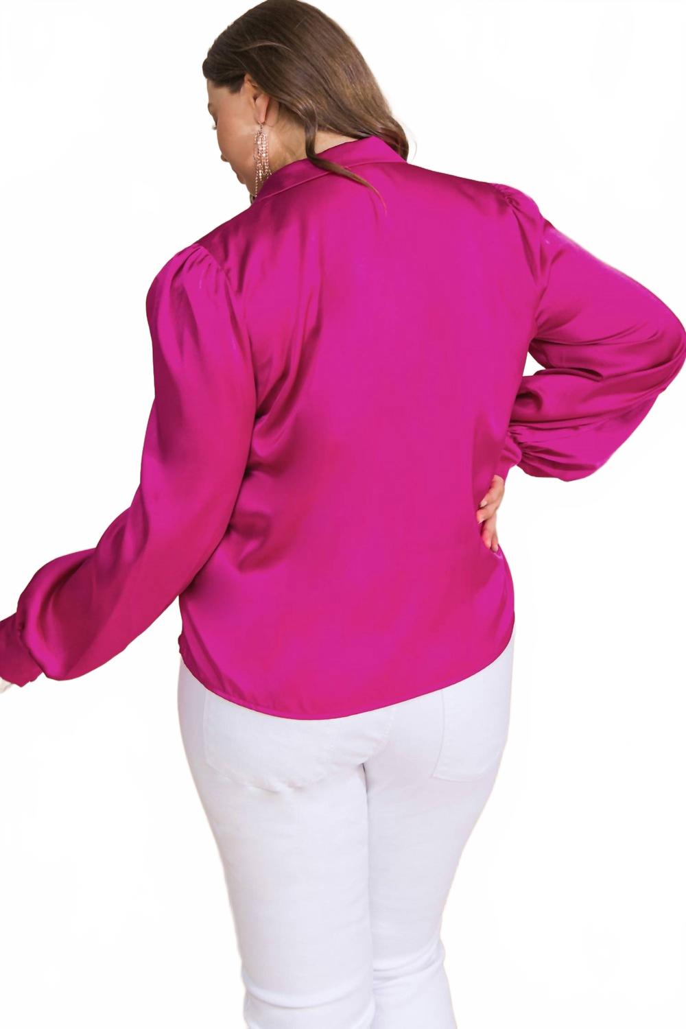 Эта блузка с длинными рукавами-буфами и застежкой на пуговицы со стразами сочетает в себе элегантность и функциональность. Изготовленная из 97% полиэстера и 3% спандекса, она обеспечивает гладкую и комфортную посадку, стильный рубашечный воротник и длину около 70 см. Изделие изготовлено в Китае. Уход прост: ручная стирка в холодной воде и сушка в разложенном виде на горизонтальной поверхности, что гарантирует долговечность изделия. Рост модели 180 см, размер 1XL.