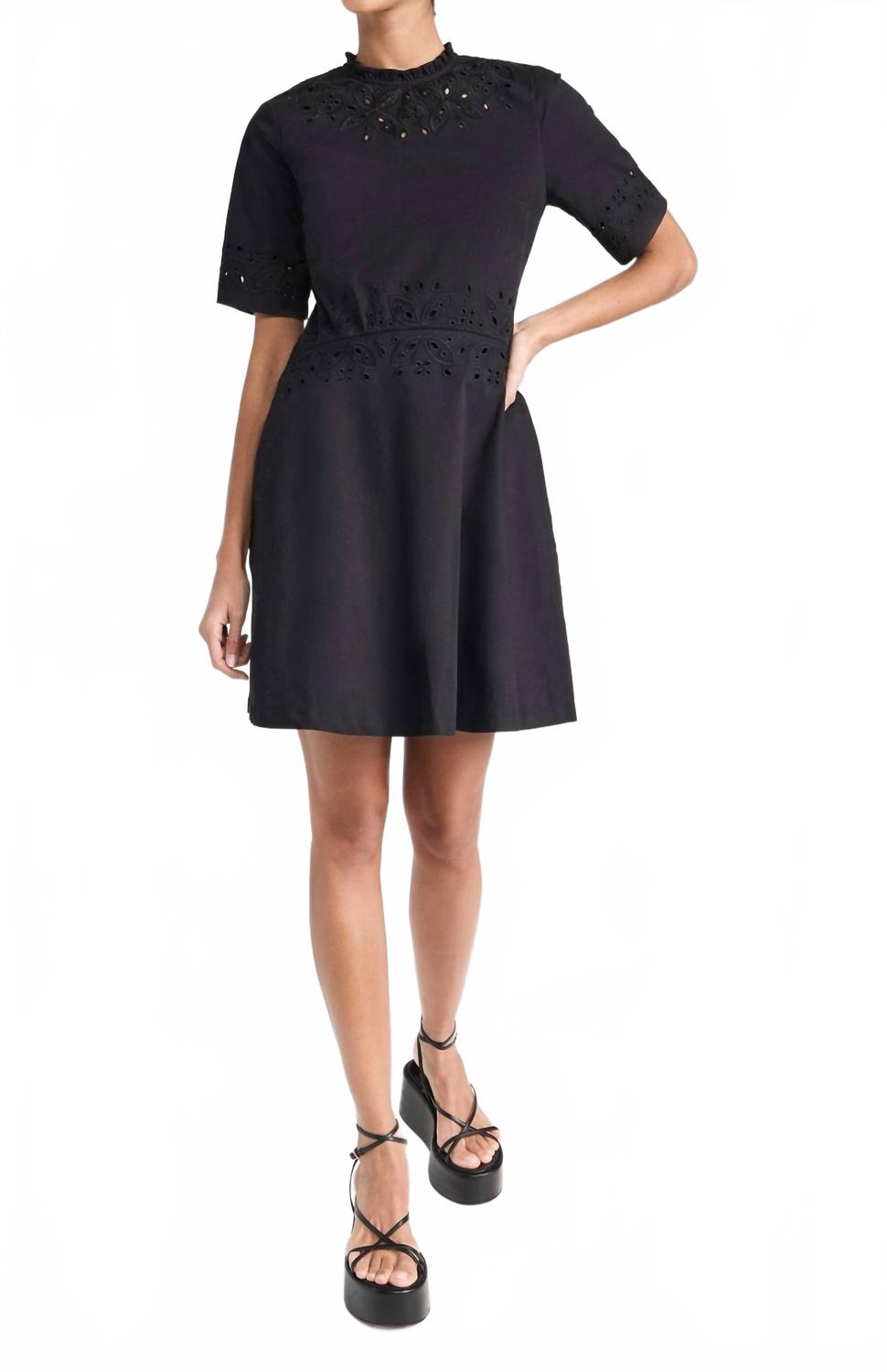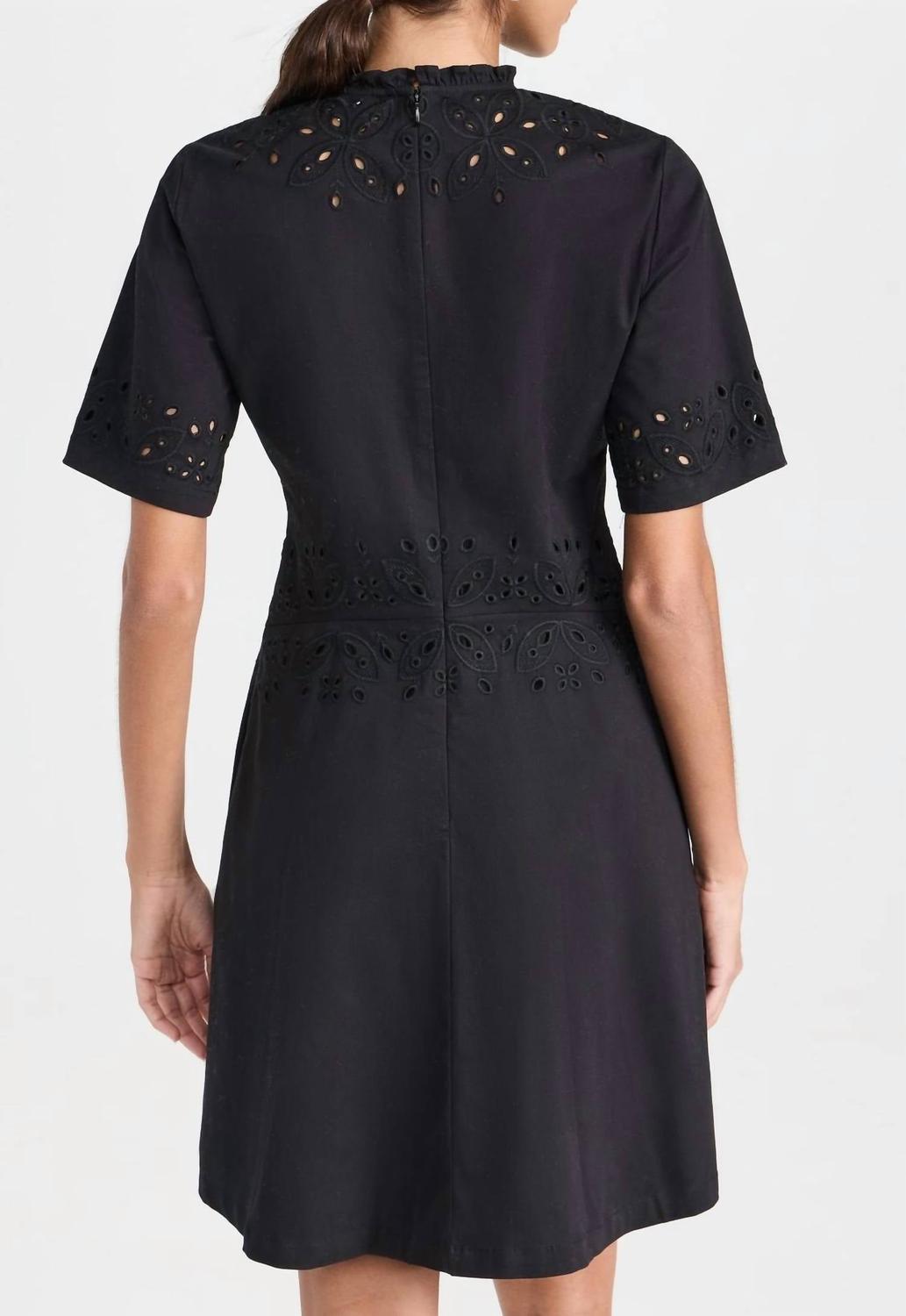 Идеальное мини-платье для теплых месяцев. Представляем платье Hazel от Shoshanna - шикарное мини-платье из хлопковой смесовой ткани с мягким А-образным силуэтом. Короткие рукава, декоративный вырез и отделка люверсами придают модели элегантность. Платье изготовлено из 98% хлопка и 2% эластана, практически не тянется и обеспечивает плотную посадку. Платье, произведенное в Китае, имеет удобную застежку-молнию с крючками и петлями, боковые карманы в швах и длину 35 дюймов. Уход за этим эластичным поплином средней плотности возможен только в химчистке.