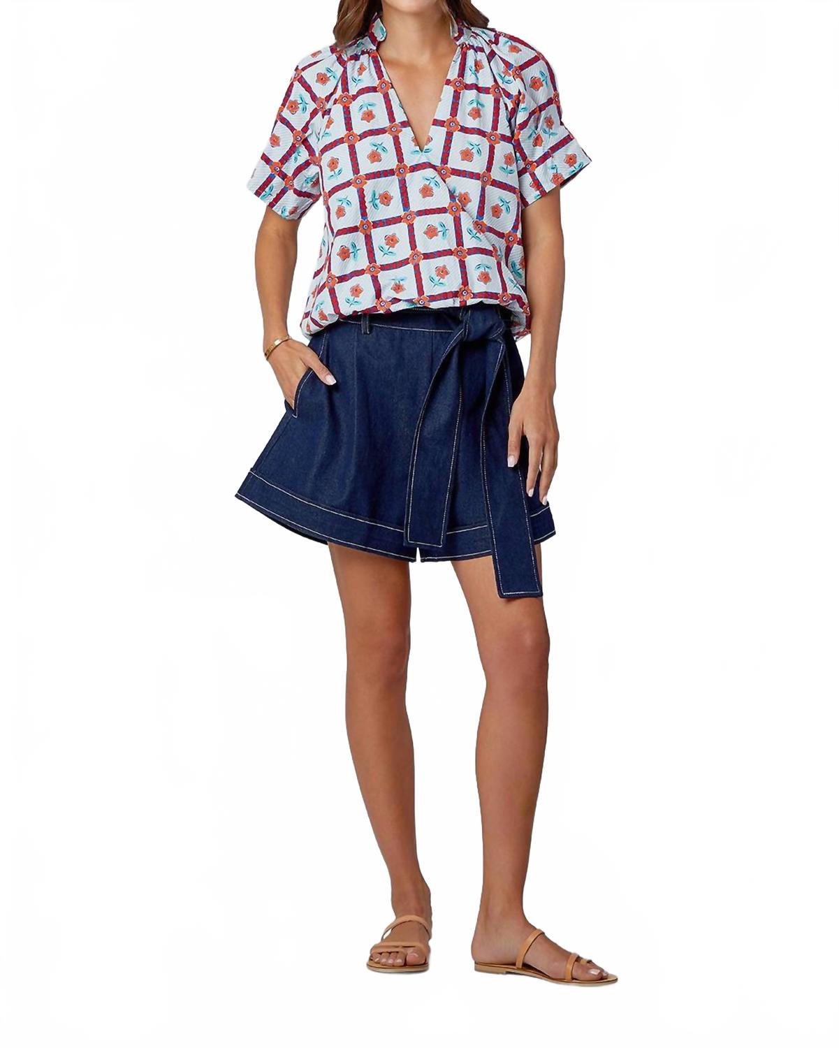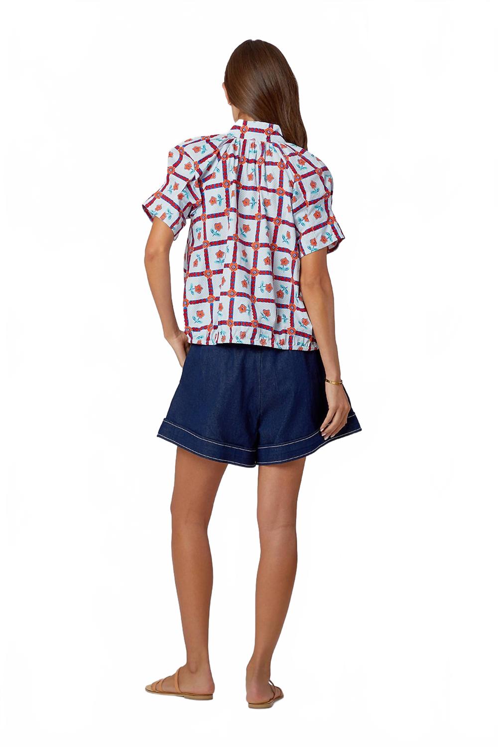 Откройте для себя топ Merritt от Livro - незаменимое дополнение к вашему гардеробу в очаровательном цвете Mayflower. Эта хлопковая блузка с короткими рукавами имеет V-образный вырез, разрез и воротник-стойку, что придает ей изысканный вид. Изготовлено в Джайпуре, Индия. Эластичный подол делает ее универсальной и сочетается с любыми вещами - от джинсов до юбок. Застежка: надевается. Уход: машинная стирка в холодной воде с мягким моющим средством, сушка в тени, глажка с изнаночной стороны.