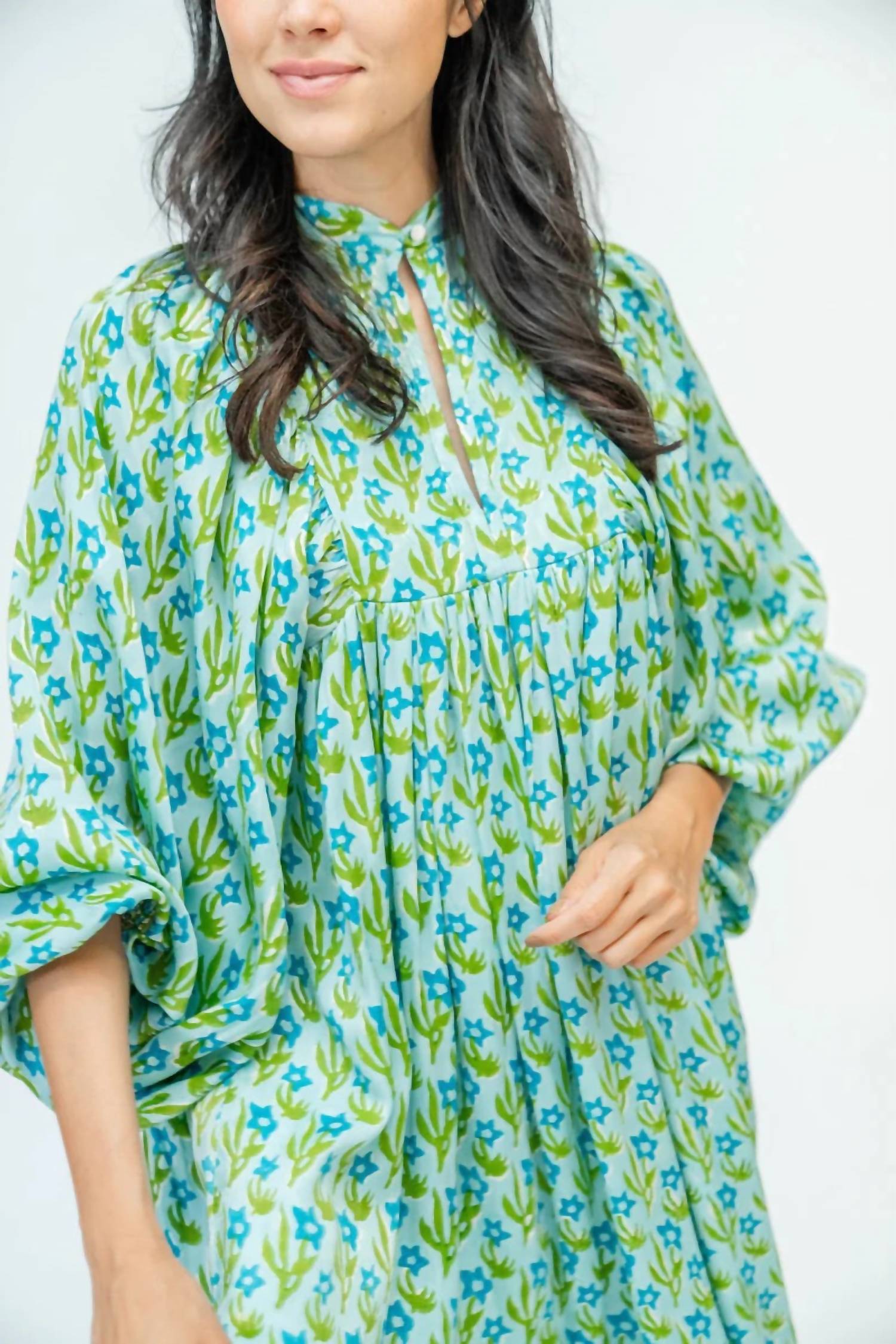 Дополните это макси-платье любимым эффектным ожерельем и босоножками для идеального образа. Откройте для себя непринужденную элегантность с платьем Cassia от Clara the Label - макси-платьем, которое идеально подойдет для любого случая. V-образный вырез, длинные рукава-фонарики с замысловатым цветочным узором и контрастная отделка по подолу делают это платье незаменимым предметом гардероба. Платье изготовлено из роскошной смеси 100% вискозы и шелка и искусно вышито вручную мастерами из Джайпура, Индия. Застежка: пуговицы. Уход: только ручная стирка.