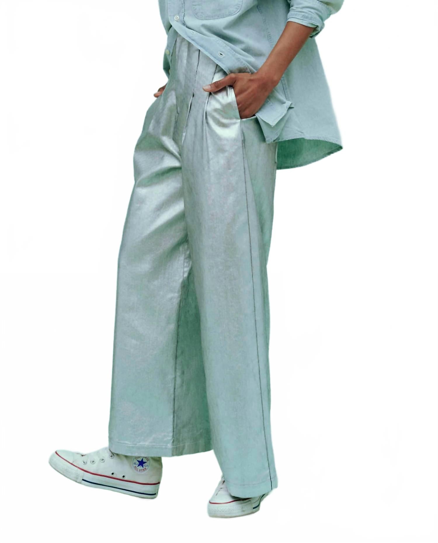 Представляем модель Sculpted Trouser от THE GREAT. - эффектную модель в металлическом серебристом цвете, которая идеально дополнит ваш осенний гардероб. Эти брюки отличаются удобной средней посадкой, свободным кроем и широкими штанинами, а также элегантной застежкой-молнией. Изготовленные из 100% хлопка, они сочетают в себе роскошный внешний вид и мягкую внутреннюю поверхность. Для практичности предусмотрены карманы в боковых швах. Уход за этими импортными брюками: машинная стирка в холодной воде и сушка в стиральной машине при низкой температуре.
