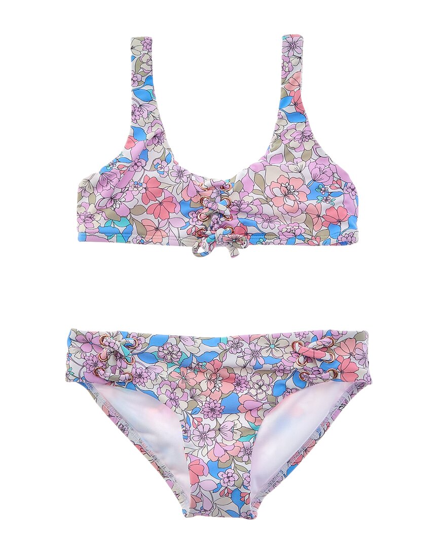Представляем двухкомпонентный купальник Raisins Newport для стильных юных девушек, которые любят привлекать внимание у бассейна или на пляже. Этот очаровательный комплект украшен ярким разноцветным рисунком, шнуровкой и фурнитурой цвета розового золота, что добавляет ему нотку гламура. Изготовлен из удобной смеси 95% нейлона и 5% спандекса, он легко надевается и идеально подходит для ношения в течение всего дня. Рекомендуется ручная стирка. Импортный товар. Дополните коллекцию купальников вашей малышки двухкомпонентным купальником Raisins Newport.