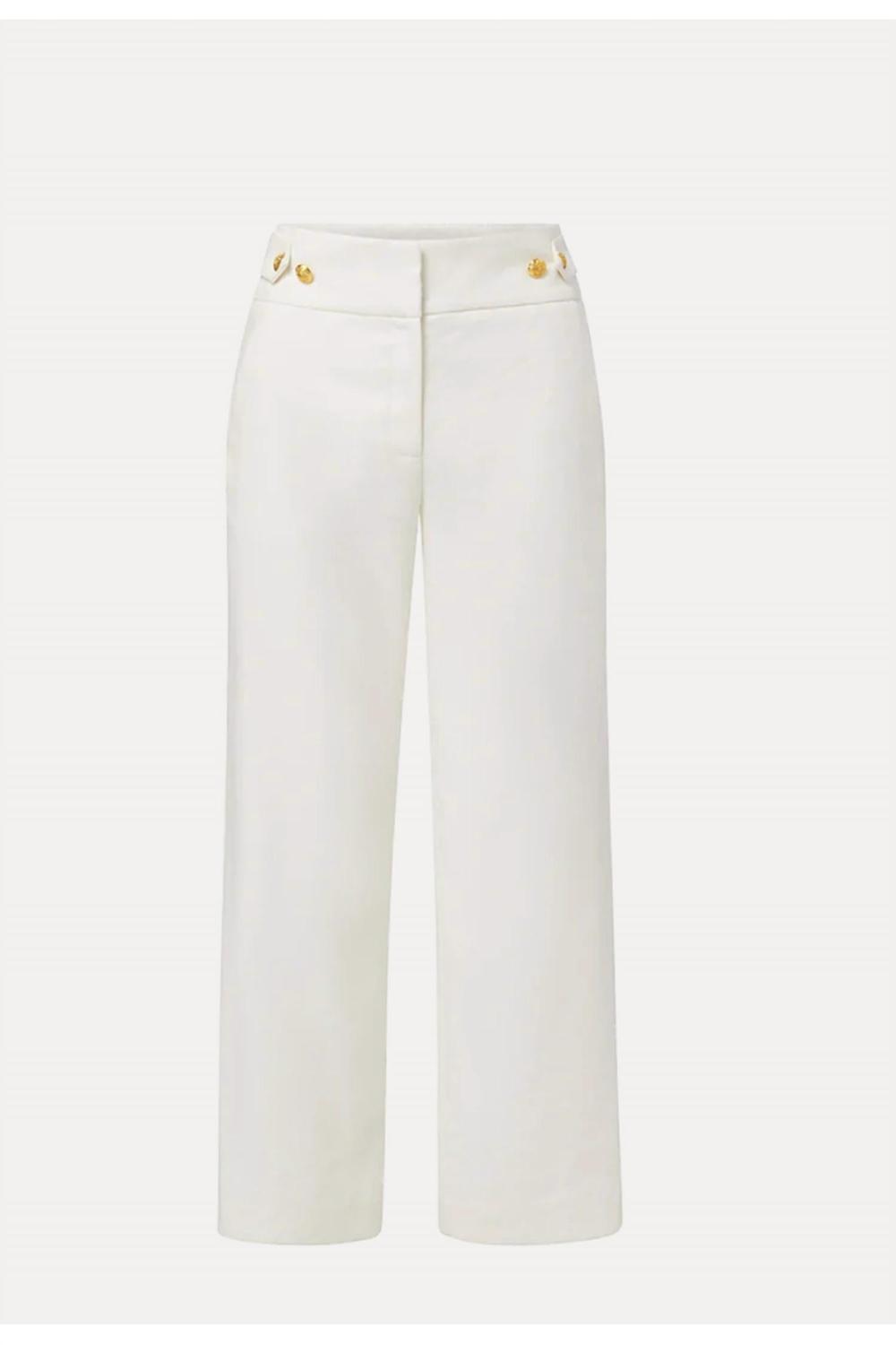 Представляем брюки Aubrie от Veronica Beard - стильное и удобное дополнение к вашему гардеробу, идеально подходящее как для офиса, так и для любого изысканного выхода. Эти стильные укороченные брюки широкого кроя белоснежного цвета изготовлены из дышащей льняной смеси (58% льна, 27% полиэстера, 14% вискозы и 1% эластана), обеспечивающей приталенный крой и легкую эластичность. Сделанные в США, они оснащены удобной застежкой-молнией и практичными карманами. Для сохранения их изысканной элегантности рекомендуем отдать их в профессиональную химчистку.