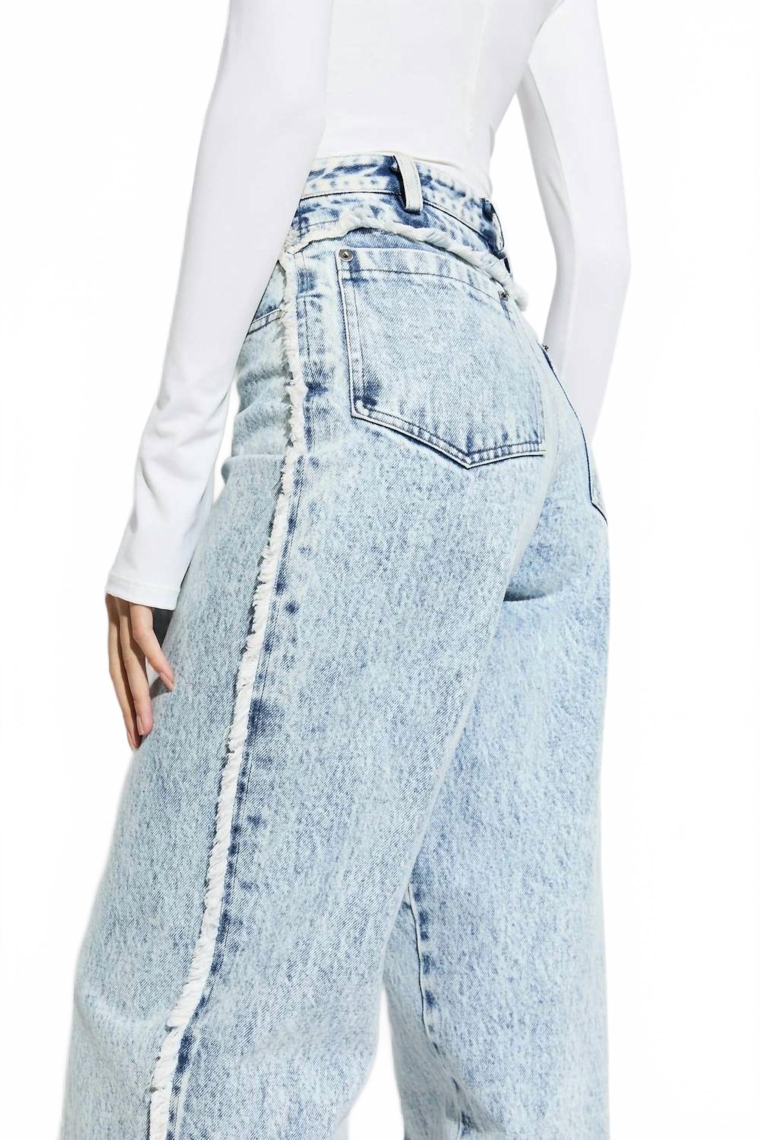 Эти классические джинсы прямого кроя идеально сидят и подходят практически ко всему. Представляем брюки Lightwash Denim Double Seam Pant от LAPOINTE - стильное дополнение для женщин, ценящих нотку моды 90-х. Эти джинсы из 100% хлопка с эффектом потертости украшены характерной бахромой по брючине и двойным швом, создающим текстурированный вид. Они имеют среднюю посадку и прямой крой, застежку-молнию на пуговицу спереди и удобные карманы сзади. Для удобства ухода можно стирать в стиральной машине или отдать в химчистку. Рост модели 178 см, размер 2.