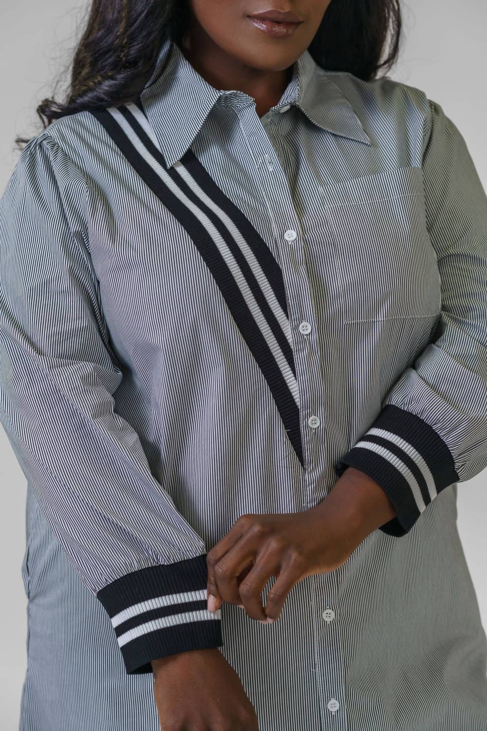 Платье-туника Wenna Shirt от JOH - стильное и удобное дополнение к вашему гардеробу, идеально подходящее для званого ужина или делового образа. Это мини-платье с длинными рукавами изготовлено из комфортной смеси 65% хлопка, 32% нейлона и 3% спандекса в сочетании с эластичной контрастной ребристой полоской и узором для придания изюминку. Благодаря воротнику-стойке и удобным карманам, оно универсально и подходит как туника, так и платье. Застежка: пуговицы. Уход: ручная стирка и сушка на веревке. Это платье plus-size - незаменимая вещь этой весны.