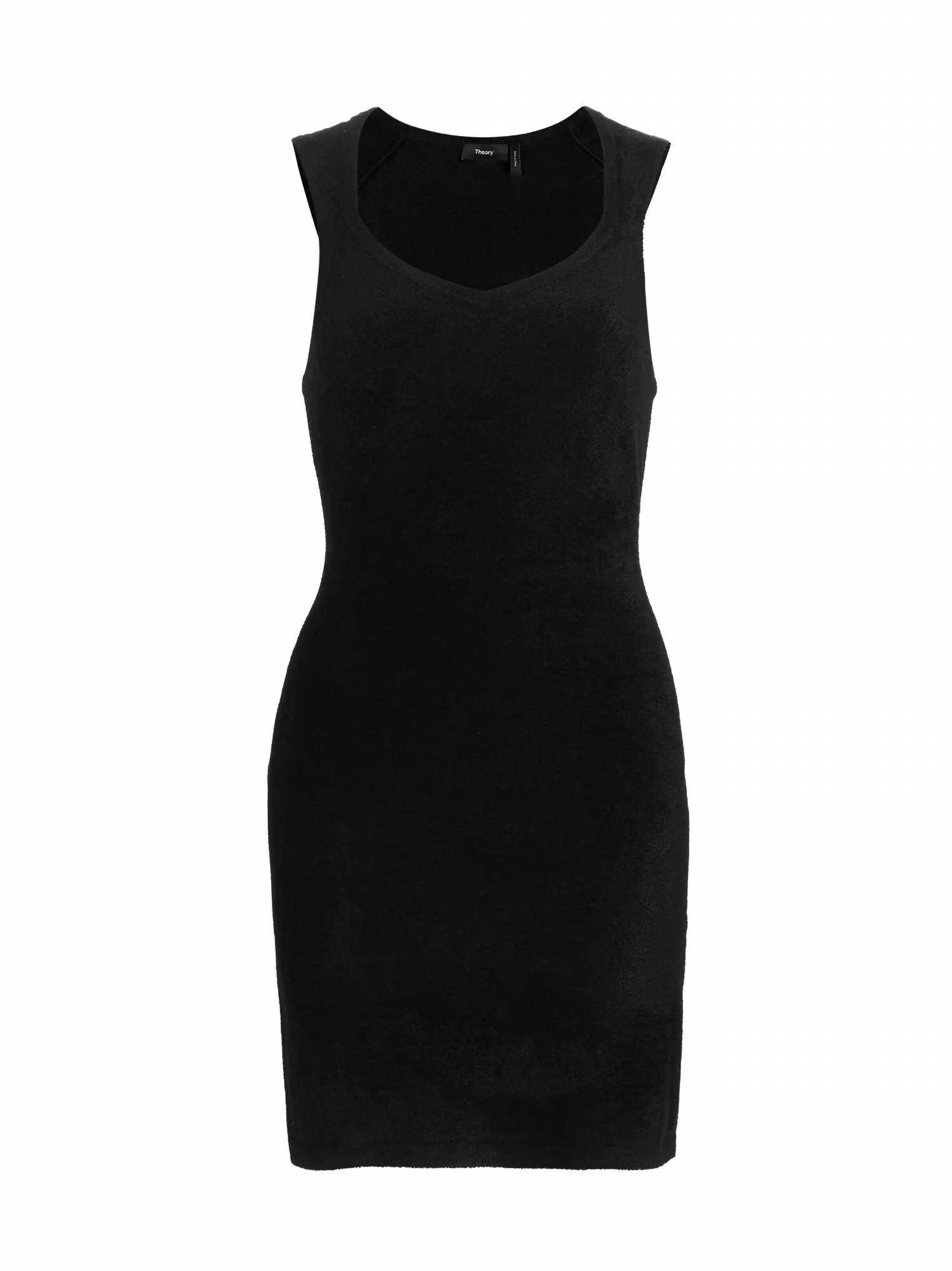 Украсьте свой праздничный образ мини-платьем без рукавов из микро-бархата от Theory. Платье имеет элегантный облегающий силуэт в классическом черном цвете. Изысканный дизайн с овальным вырезом горловины и застежкой-липучкой обеспечивает удобство и элегантность. Это платье длиной 35 дюймов (91 см) изготовлено из смеси 52% вискозы и 48% нейлона и выполнено из эластичной ткани, обеспечивающей приталенный силуэт. Уход: только химчистка. Импортный товар. Размер Medium: обхват груди 15 дюймов (35 см).
