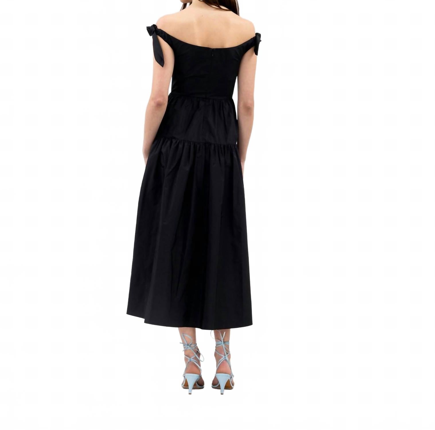 Просто добавьте шлепанцы или мюли, и все готово. Станьте королевой бала в платье Tanya Taylor Ashland с открытыми плечами - великолепном образе для любого элегантного случая. Это платье без рукавов имеет длинный многоярусный А-образный силуэт и выполнено из 100% полиэстера, что создает ощущение роскоши. Вырез с открытыми плечами добавляет соблазнительный штрих, а застежка-молния обеспечивает идеальную посадку. Это черное платье миди идеально подходит для вечерних мероприятий. Чтобы сохранить его изысканный шарм, его необходимо сдать в химчистку.