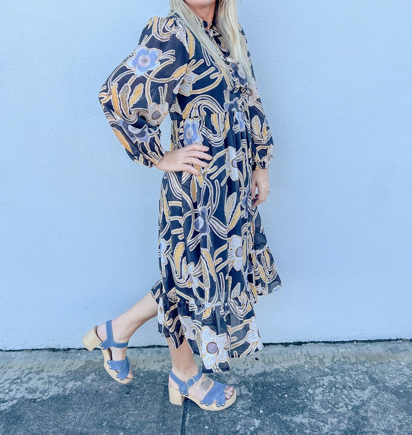 Платье миди с цветочным принтом Somewhere Out There в черной гамме Jodifl