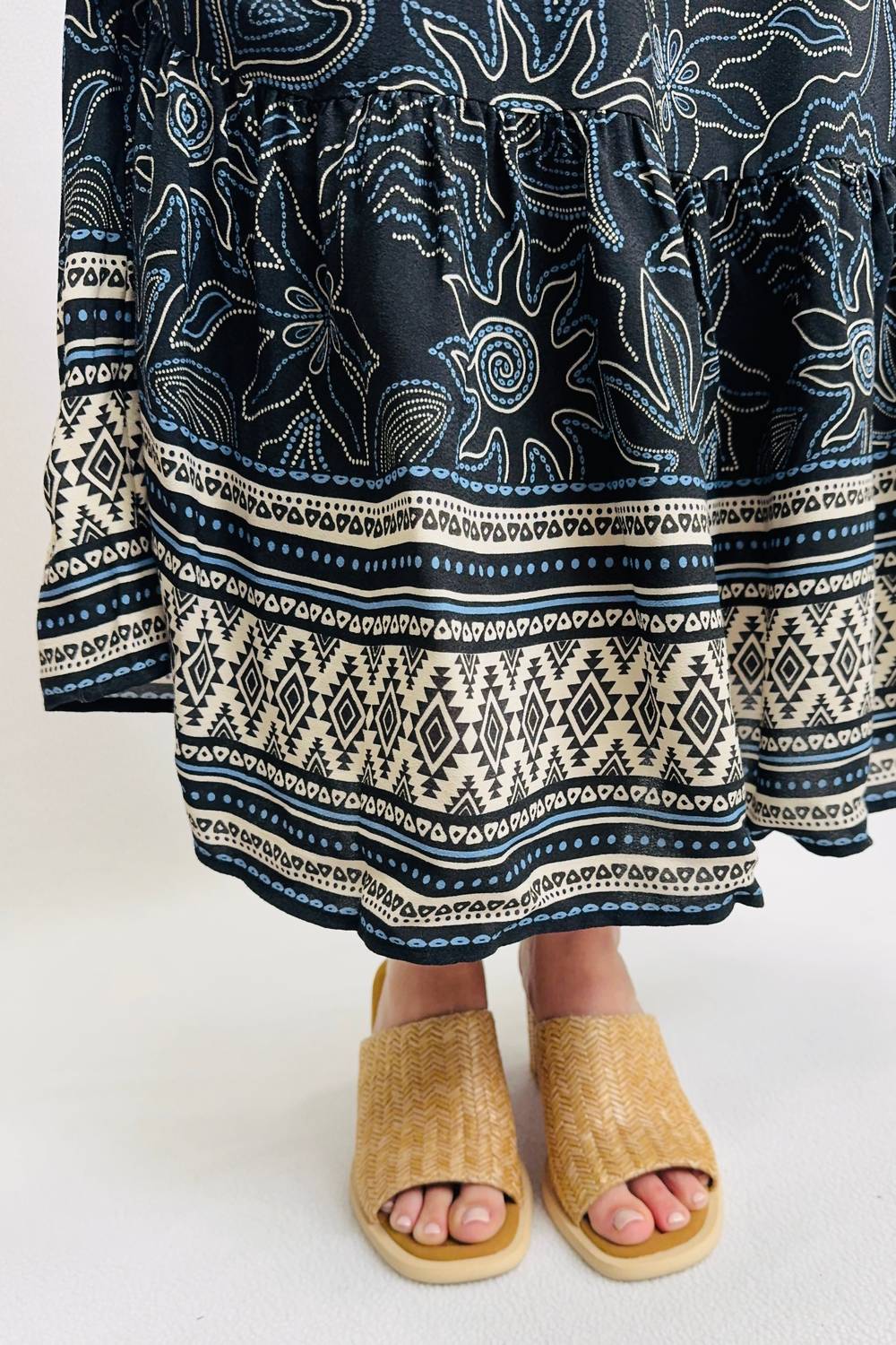 Платье миди настолько универсально, что ваши варианты его ношения безграничны. Представляем платье без рукавов с рюшами от TRIBAL - потрясающее изделие с глубоким морским цветочным принтом, идеально подходящее для летних ужинов. Это элегантное платье с лифом с рюшами, эластичными бретельками в стиле майки и облегающим А-силуэтом миди с практичными карманами. Платье изготовлено из 100% вискозы, оно удобное и стильное. Рекомендации по уходу: машинная стирка в холодной воде на деликатном режиме и сушка на веревке для оптимального сохранения цвета.