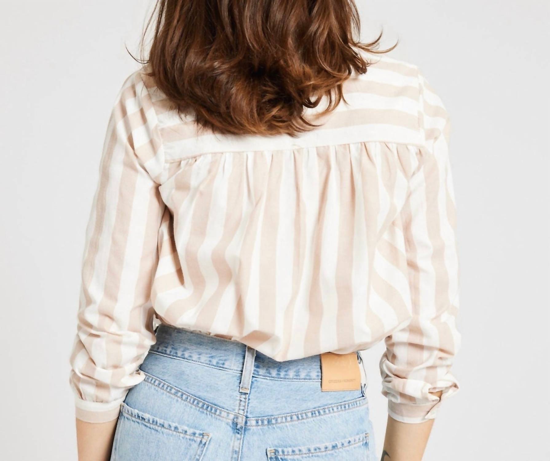 Универсальная блузка, которая подойдет и для работы, и для ужина! Представляем топ Joni Top от MILLE - непринужденный, но в то же время элегантный вариант в полоску цвета капучино, идеально подходящий для легких путешествий. Эта блузка с V-образным вырезом с кисточками и удобной застежкой-липучкой. Длинные рукава придают ей элегантности, что делает ее идеальным выбором для летних приключений или в качестве подарка на День матери. Созданная для женщин, которые ценят простоту без ущерба для стиля, эта блузка станет незаменимой вещью в гардеробе.