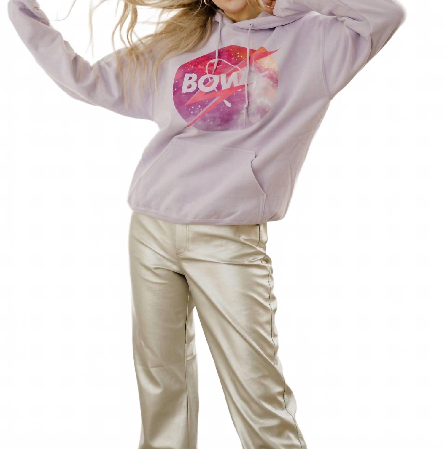 Бегаете ли вы по городу или отдыхаете дома, эта толстовка подойдет и для того, и для другого. Дополните свою уличную коллекцию худи David Bowie Starman от LivyLu, представленной в эффектном цвете «Орхидея». Эта толстовка с длинными рукавами, классическим кроем и двухслойным капюшоном для дополнительного комфорта. Безупречно сшитая из смеси 50% хлопка и 50% полиэстера, она имеет стильную завязку и функциональный карман-кенгуру. Эта официально лицензированная графическая модель идеально подходит для отпуска и воплощает комфорт и культовый стиль.