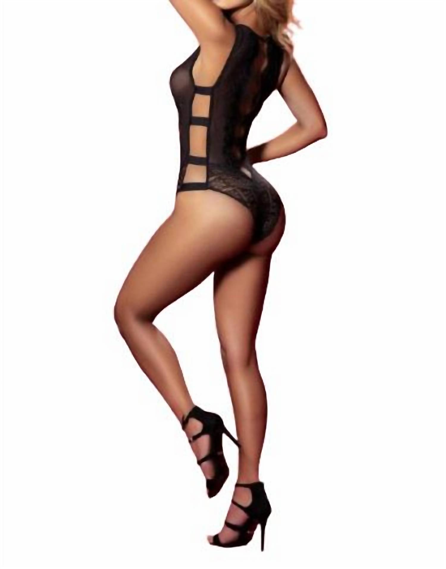 Черный боди с кружевом и стразовыми зигзагами Mapale