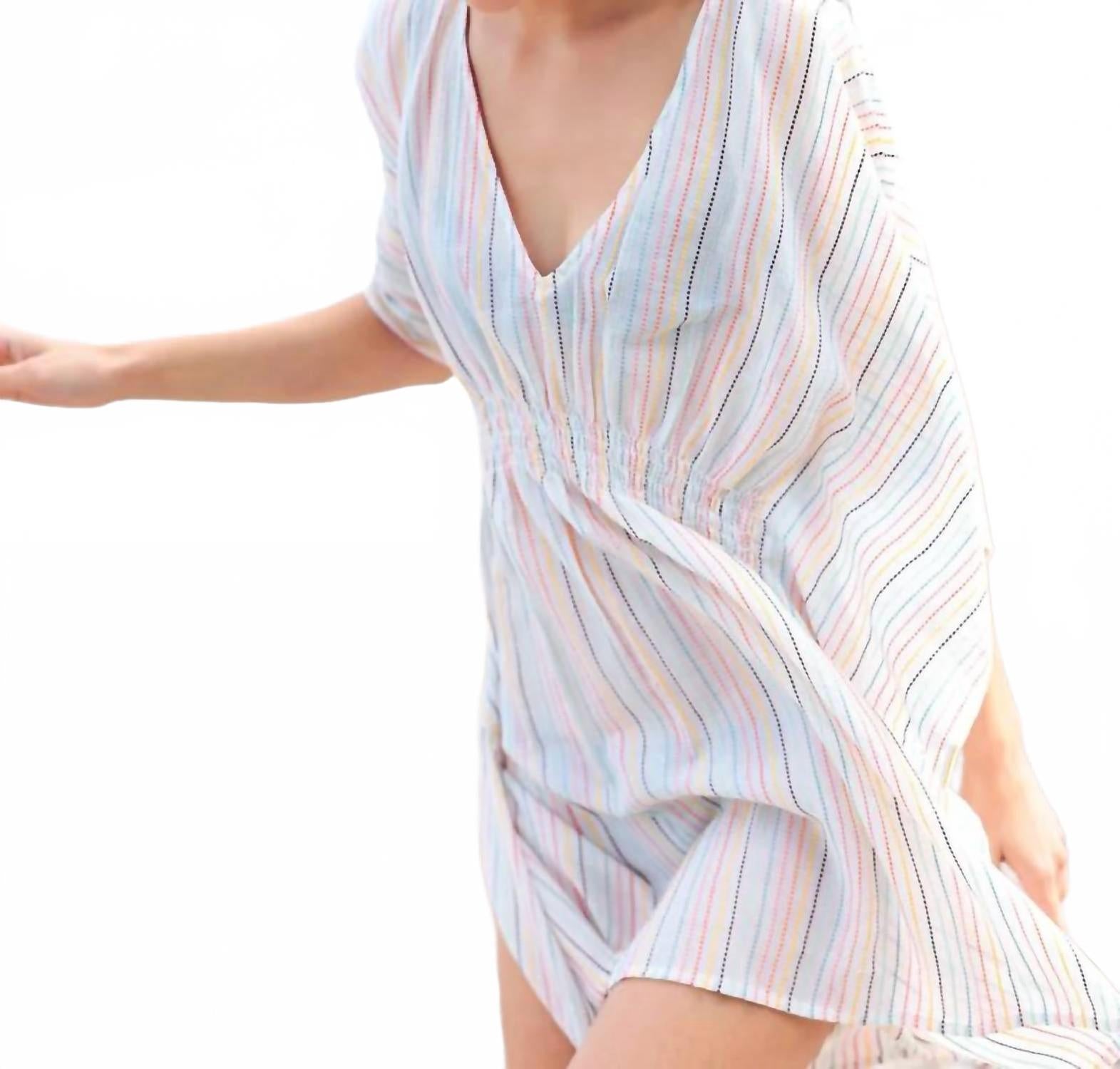 Идеальный наряд для вечеринок у бассейна, пляжных дней и долгих выходных. Хлопок; машинная стирка, сушка в стиральной машине при низкой температуре. Непринужденно шикарный и невероятно воздушный, накидка Jessica Cover-Up - ваш идеальный наряд для солнечных пляжных дней. Мягкие разноцветные полоски и свободный силуэт обеспечивают легкость движений. Утягивающая талия добавляет структуру, а V-образный вырез и струящийся крой делают образ игривым и комфортным. Идеально накинуть ее поверх купальника и отправиться прямо с берега на морской завтрак.