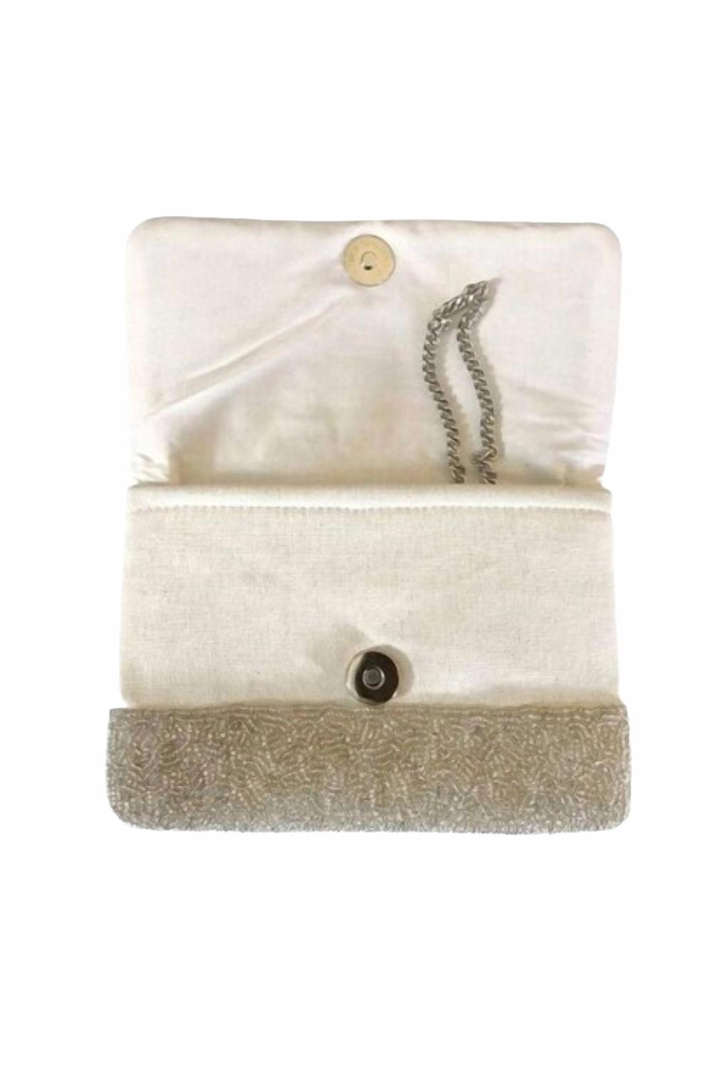Идеальный клатч для вечернего выхода в город. Представляем мини-клатч Evil Eye Beaded от Golden Stella - стильный аксессуар, сочетающий в себе очарование и защиту. Этот шикарный белый клатч, изготовленный из 100% хлопка, вручную украшен тысячами бусин, символизирующих удачу. Застежка на магнитной кнопке, подкладка и внутренний накладной карман для удобного хранения вещей. Размеры клатча: ширина 7,5 дюйма (18 см), высота 5 дюймов (122 см), в комплекте съемный серебряный ремешок-цепочка длиной 48 дюймов (122 см). Уход: только локальная чистка.