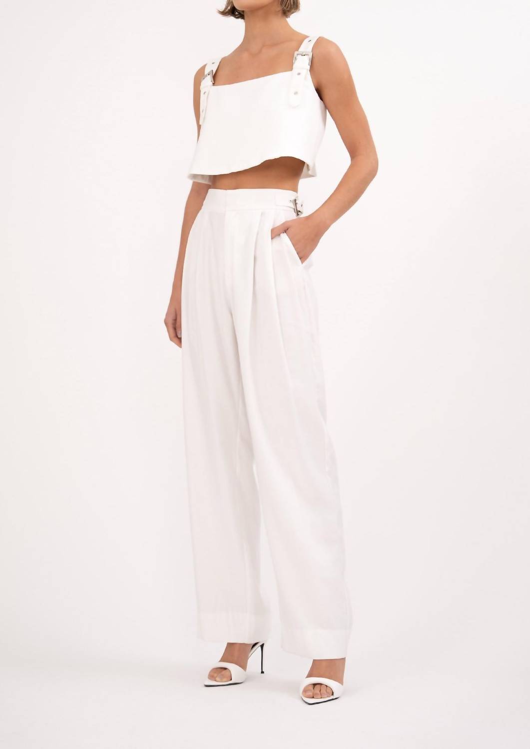 Добавьте изысканности в свой летний гардероб с брюками Brooks Pant от Nonchalant Label, выполненными в белоснежном цвете. Эти брюки широкого кроя с высокой талией имеют плиссированный, облегающий прямой силуэт и дополнены регулируемыми пряжками на поясе, что придает им современный вид. Карманы и надежная застежка на крючок обеспечивают идеальное сочетание стиля и функциональности. Эти брюки, родом из Колумбии, воплощают сдержанную роскошь и требуют химчистки, что делает их идеальными для праздничных вечеринок и празднования Дня благодарения.