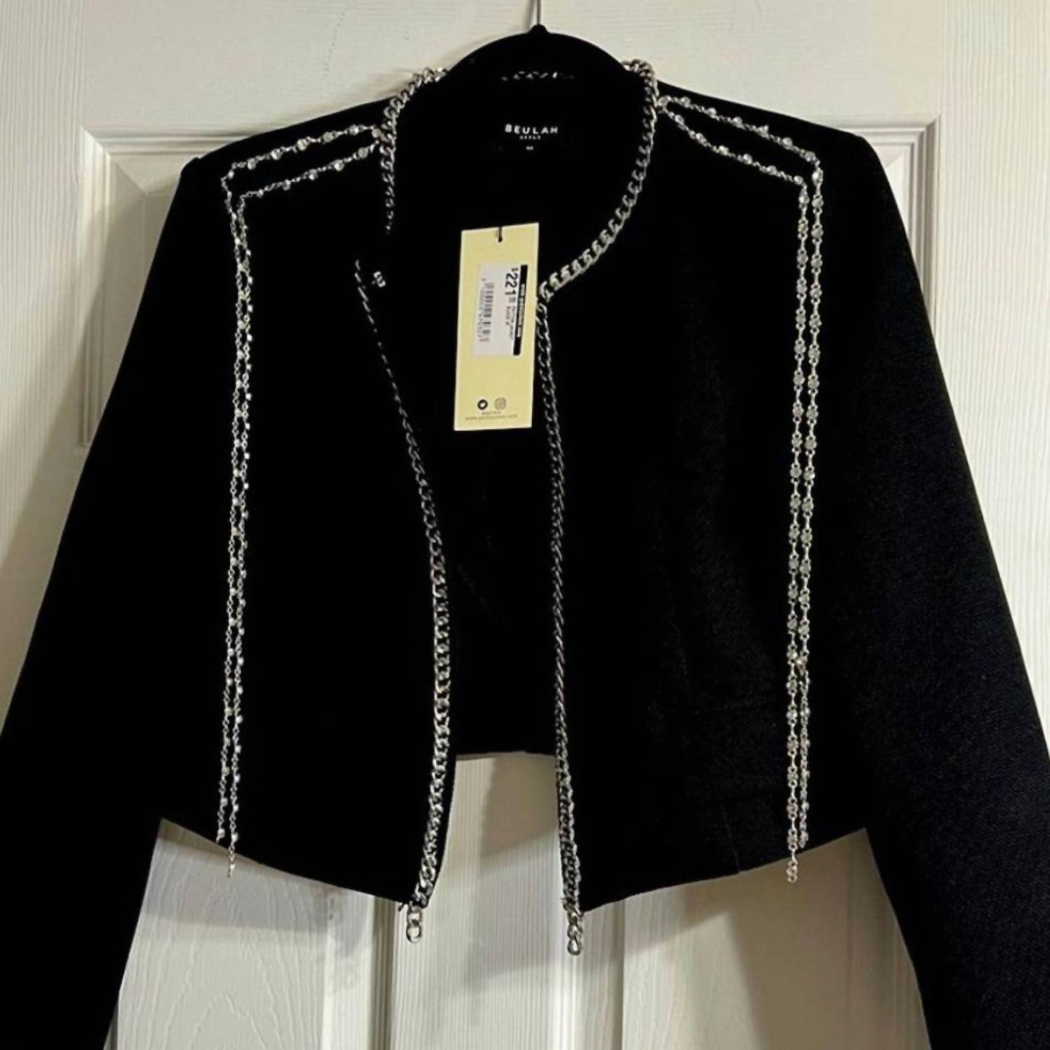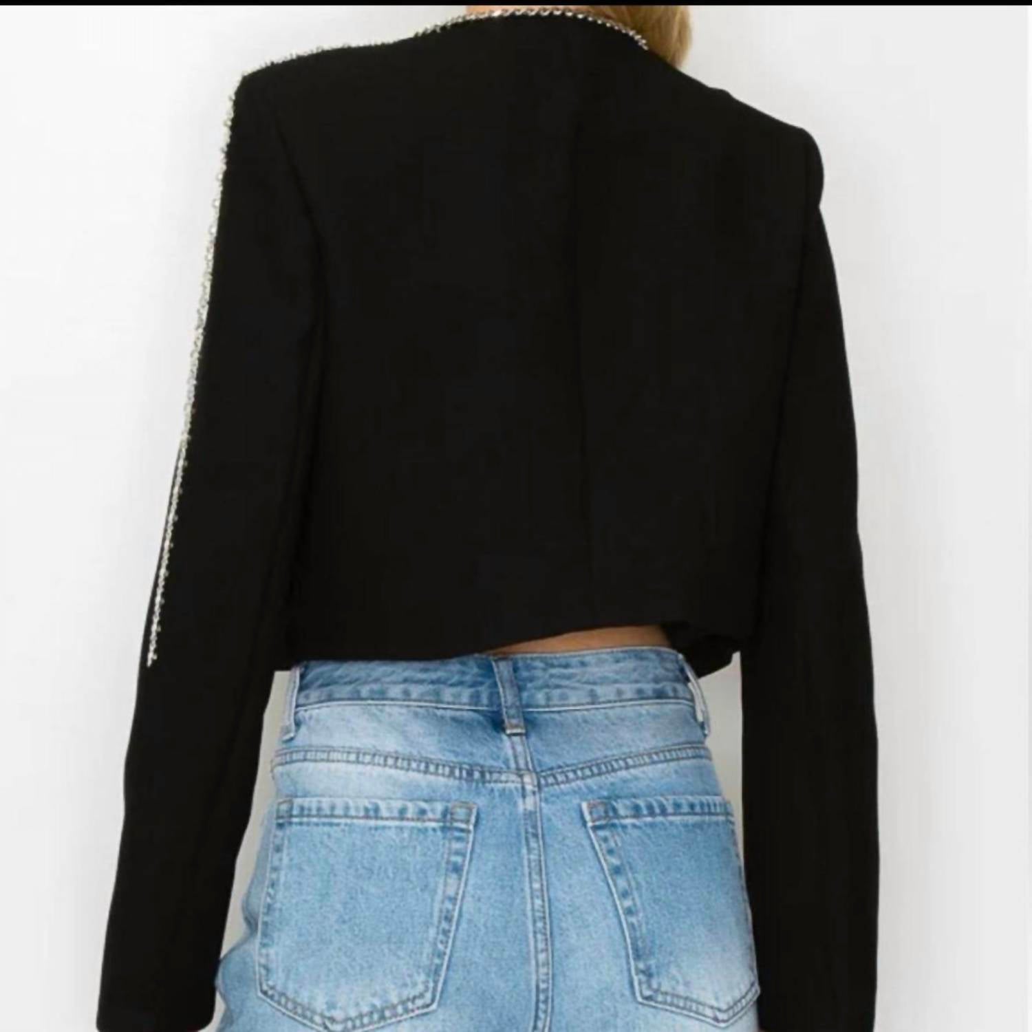 Черный укороченный блейзер с серебряной цепочкой BEULAHSTYLE