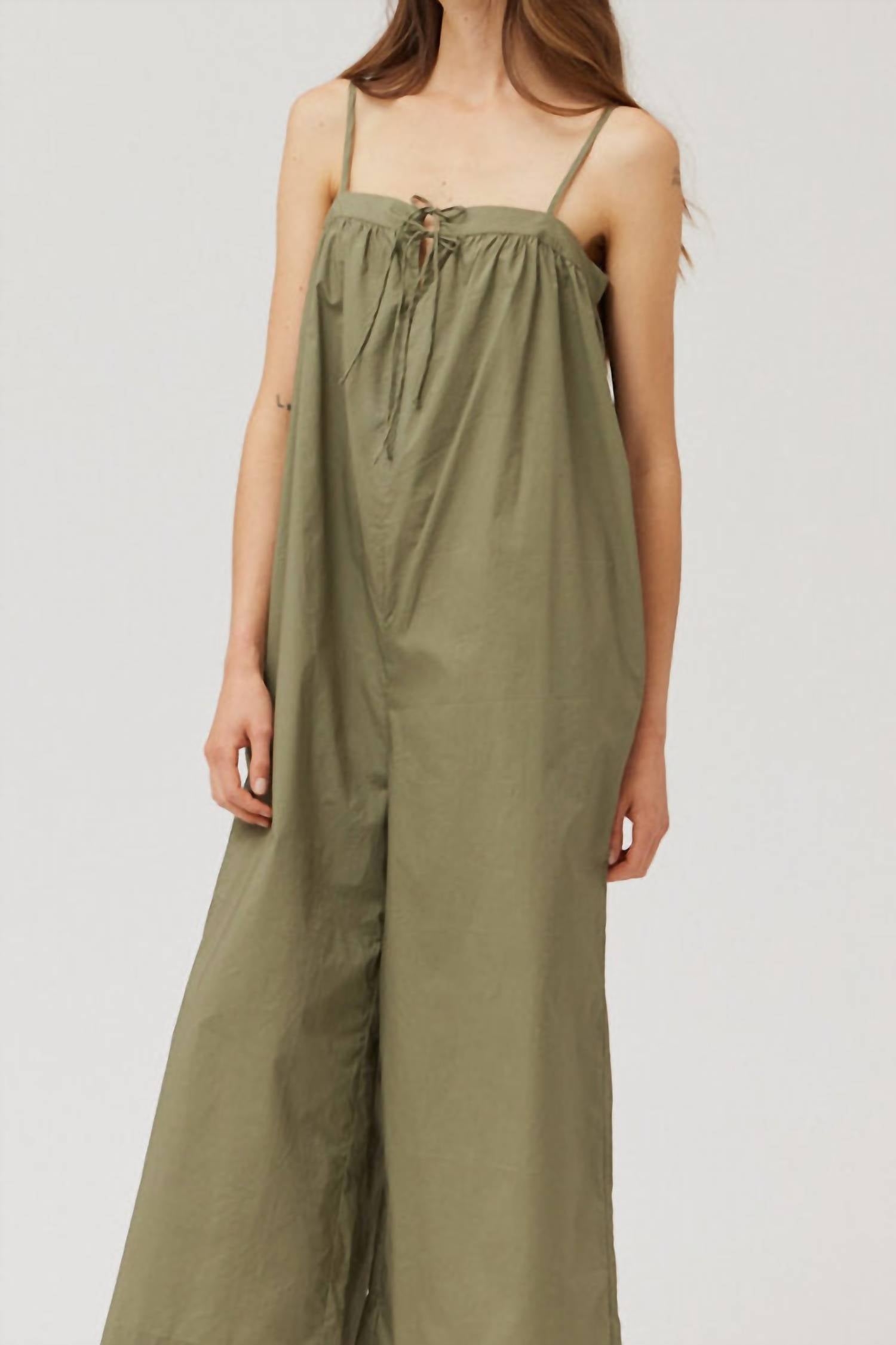 Идеальный выбор, когда нужно быстро надеть что-то, но при этом хочется выглядеть стильно и непринужденно. Ощутите непринужденный стиль в комбинезоне GRADE & GATHER Cotton Strap Combosuit в спокойном шалфейном цвете. Этот однотонный комбинезон с широкими штанинами изготовлен из 100% хлопка, обеспечивая комфорт и свободную посадку. Удобная завязка и карманы обеспечивают дополнительную функциональность. Этот струящийся комбинезон, импортируемый из других стран, гарантирует высочайшее качество и станет неотъемлемой частью любого гардероба.