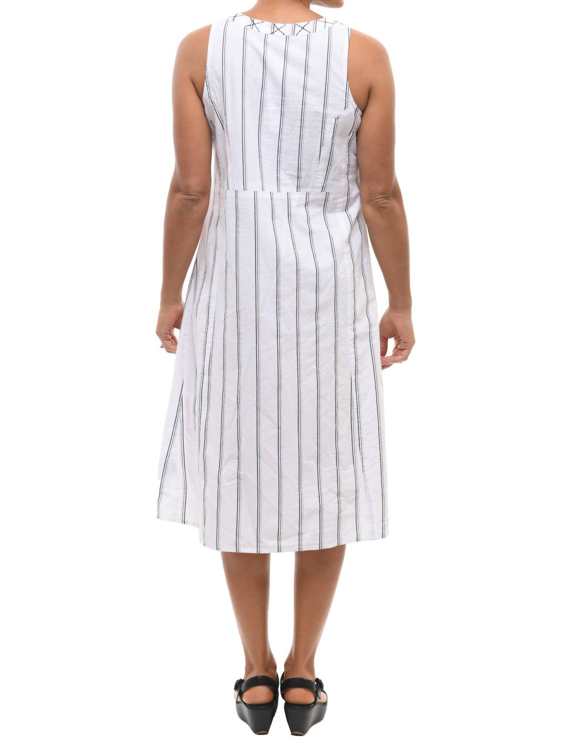 Платье Victoria от Tulip Clothing воплощает элегантность благодаря безрукавному крою и изысканному V-образному вырезу с эффектным узором Goldman Stripe. Это платье без подкладки длиной миди из приятного хлопка идеально подходит для самых разных случаев. Благодаря практичным карманам, оно сочетает в себе стиль и функциональность. Уход прост, рекомендуется машинная стирка. Доступно в нескольких размерах, включая XS. Обхват груди 91 см, обхват талии 91 см и длина по центру 101 см. Состав: 100% хлопок.