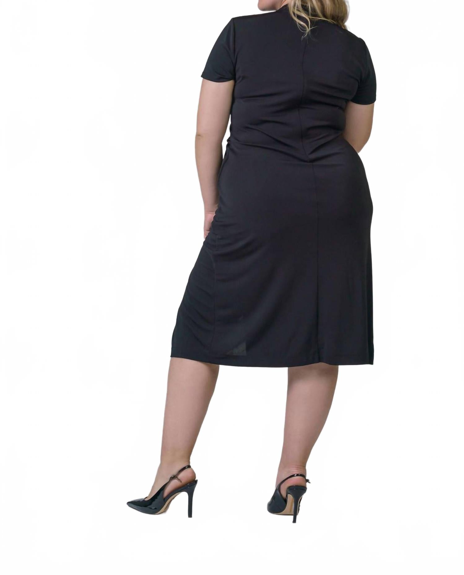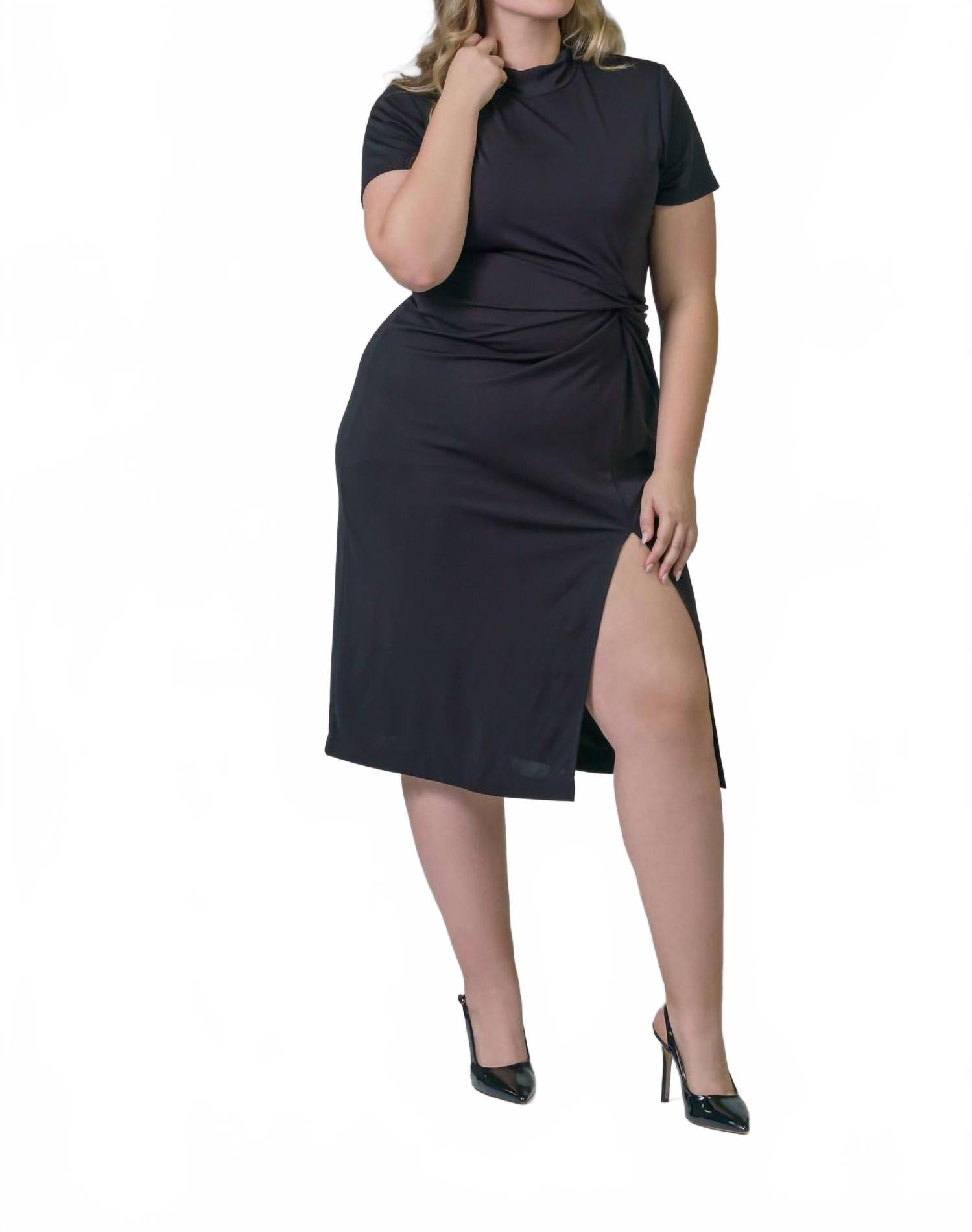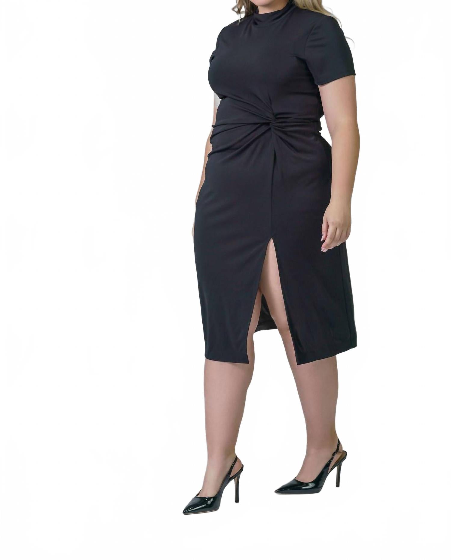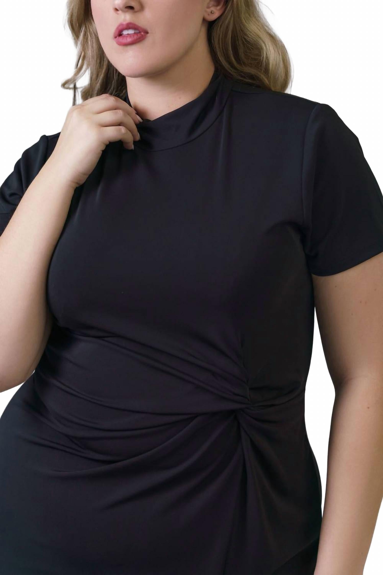 Откройте для себя платье миди Flint от TANYA TAYLOR, созданное для женщин plus-size, ценящих изысканность. Это черное платье с короткими рукавами имеет воротник-стойку и выгодно подчеркивающий фигуру А-силуэт, подчеркнутый элегантным перекрученным узлом на талии. Платье изготовлено из 95% полиэстера и 5% спандекса и оснащено удобной застежкой-молнией для удобства ношения. Ухаживайте за платьем: стирайте в стиральной машине и сушите на веревке, чтобы оно сохранило свою неизменную привлекательность.