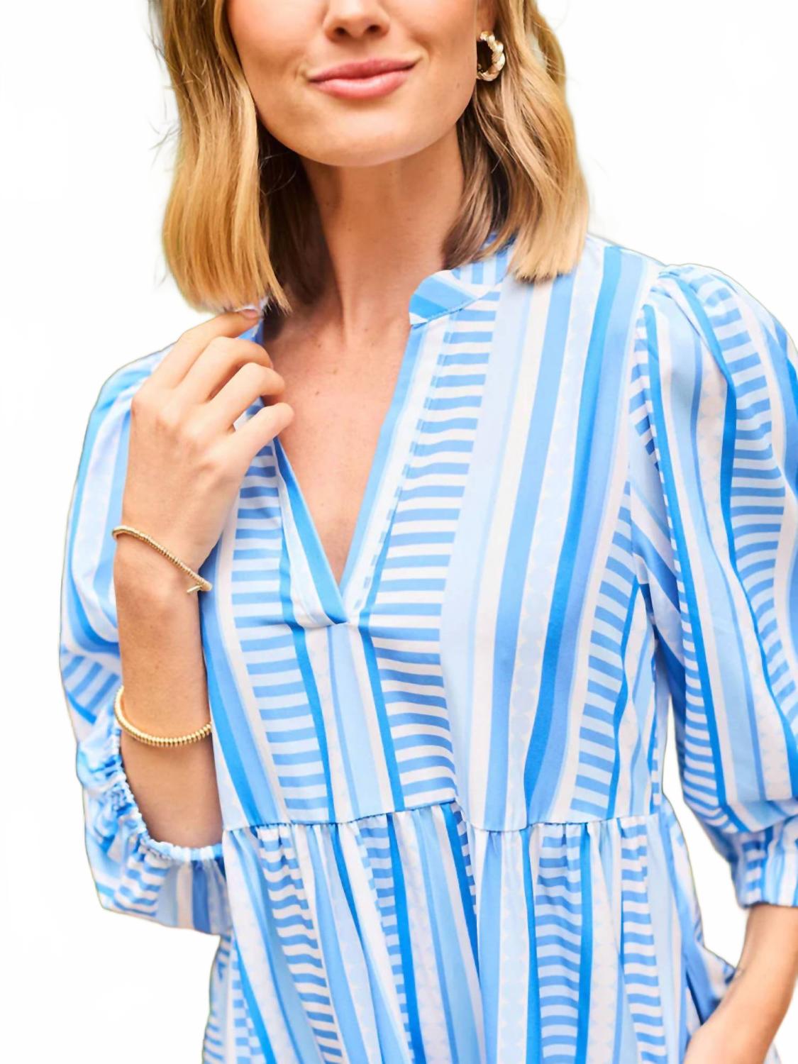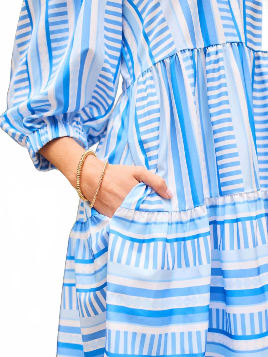 Комфортное и элегантное платье, которое вы будете носить круглый год. Дополните свой летний гардероб платьем Cooper Tiered Dress от Mary Square, которое сочетает в себе функциональность и моду. Это женское мини-платье с рукавами три четверти и элегантным V-образным вырезом выполнено из смеси 97% полиэстера и 3% спандекса для свободного кроя. Платье с классическим полосатым узором длиной до колена или выше и с практичными карманами. Благодаря простой застежке-липучке оно идеально подходит для весенних каникул, обеспечивая комфорт и стиль.