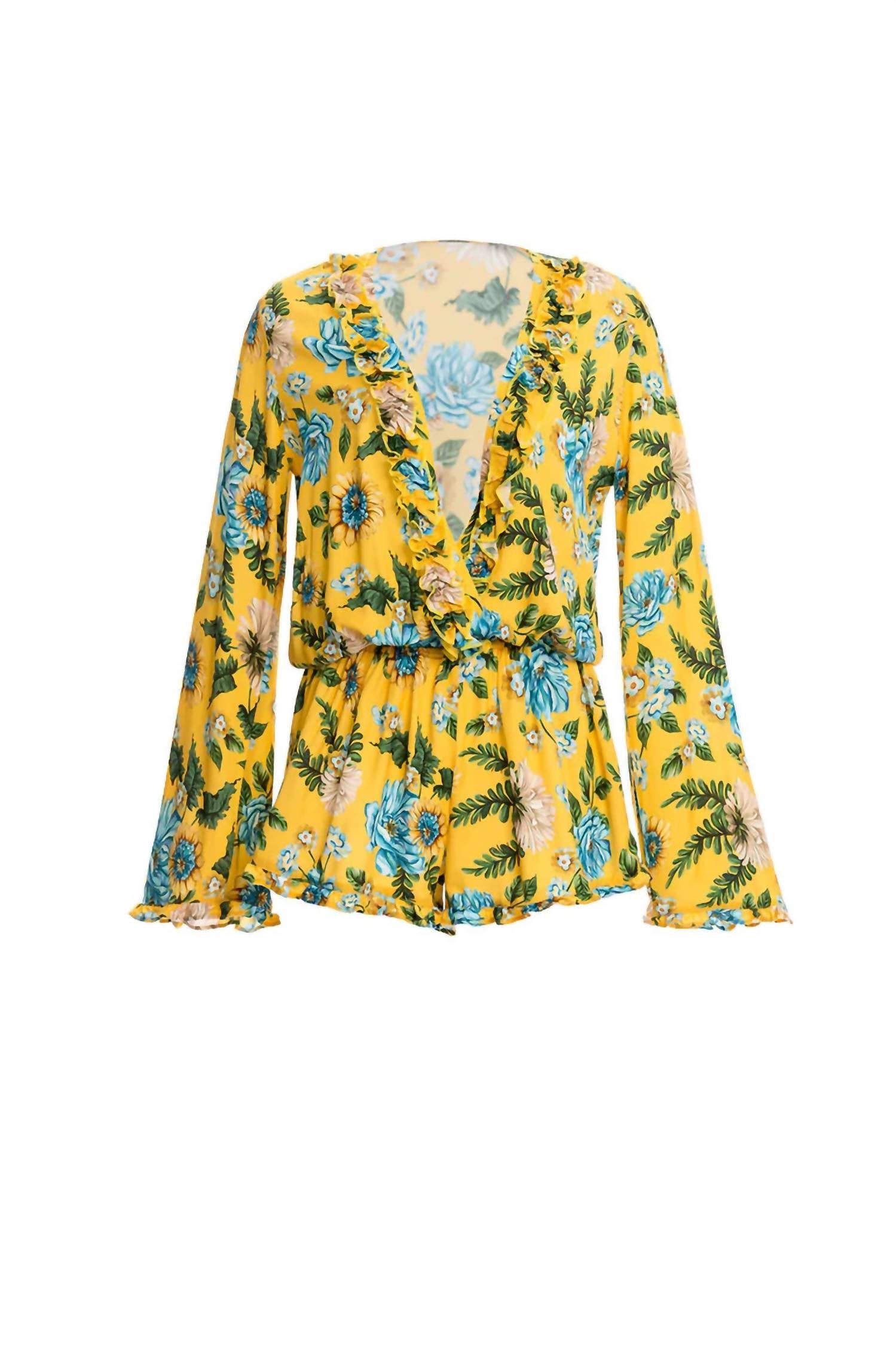 Откройте для себя воплощение бохо-шика в ярком желтом цветочном принте. Изготовлено из 100% вискозы. Изделие имеет привлекательный V-образный вырез, идеально подходящий для лета. Сделано в Колумбии. Удобная застежка обеспечивает комфорт и удобство. Уход за этим элегантным изделием: стирайте вручную и сушите на вешалке. На модели размер S.