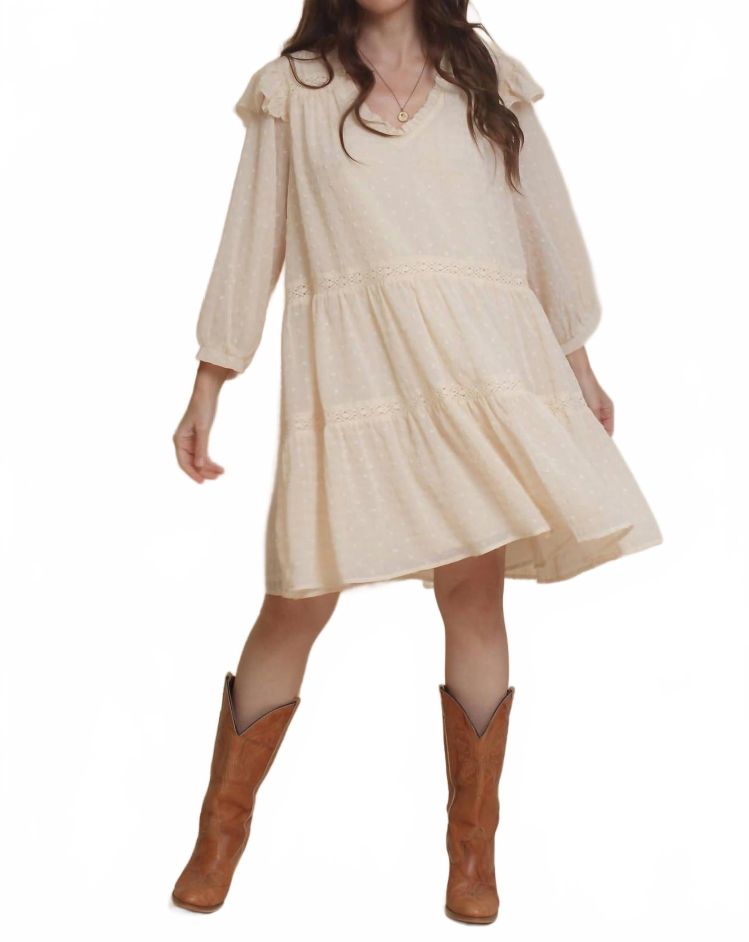 Платье Katarina Mini Dress от Jacquie The Label, подчеркивающее фигуру и одновременно удобное, станет вашим выбором из сезона в сезон. Представляем мини-платье Katarina от Jacquie The Label - идеальное дополнение к вашему гардеробу в стиле бохо-шик в натуральном оттенке. Это женское платье с длинными рукавами и V-образным вырезом, А-силуэтом в стиле бэбидолл, подчеркнутым текстурированным швейцарским шифоном в горошек и кружевными вставками. Это платье из 100% полиэстера идеально подходит для отпуска. Уход: ручная стирка или химчистка.