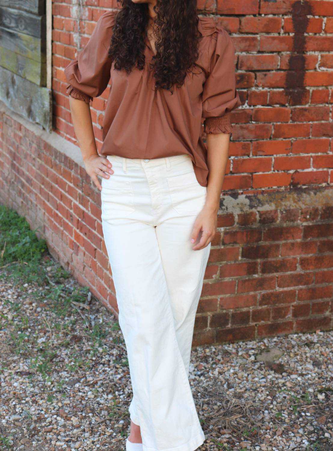Сочетайте его с любимыми джинсами и шлепанцами для следующей девичьей вечеринки. Откройте для себя женский топ Kiona от Jade - шикарную коричневую блузку, идеально подходящую для вашего летнего гардероба. Этот топ с короткими рукавами-фонариками и стильным V-образным вырезом выполнен из 100% хлопка для комфорта и воздухопроницаемости. Игривый дизайн дополнен очаровательными пуговицами, а застежка - удобной застежкой. Эта однотонная модель с узором идеально подходит для отпуска и сочетает в себе стиль и простоту. На модели размер x-sm.