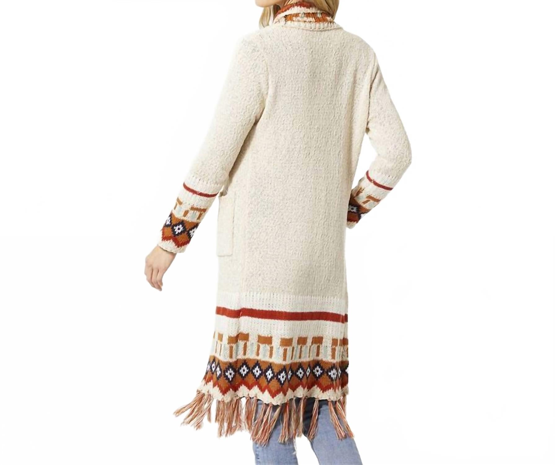 Этот кардиган станет вашим любимым свитером. Окунитесь в уютную элегантность с кардиганом COCO + CARMEN Zahara с бахромой. Этот кардиган в стиле бохо-шик насыщенного кремового оттенка с длинными рукавами, отделкой бахромой и фактурным узором создает стильный образ. Кардиган изготовлен из мягкого акрила, имеет удлиненную модель и воротник-стойку, идеально подходящую для зимних путешествий или повседневных прогулок. Благодаря удобной застежке-липучке и карманам, он станет незаменимым предметом многослойного гардероба в любое время года.