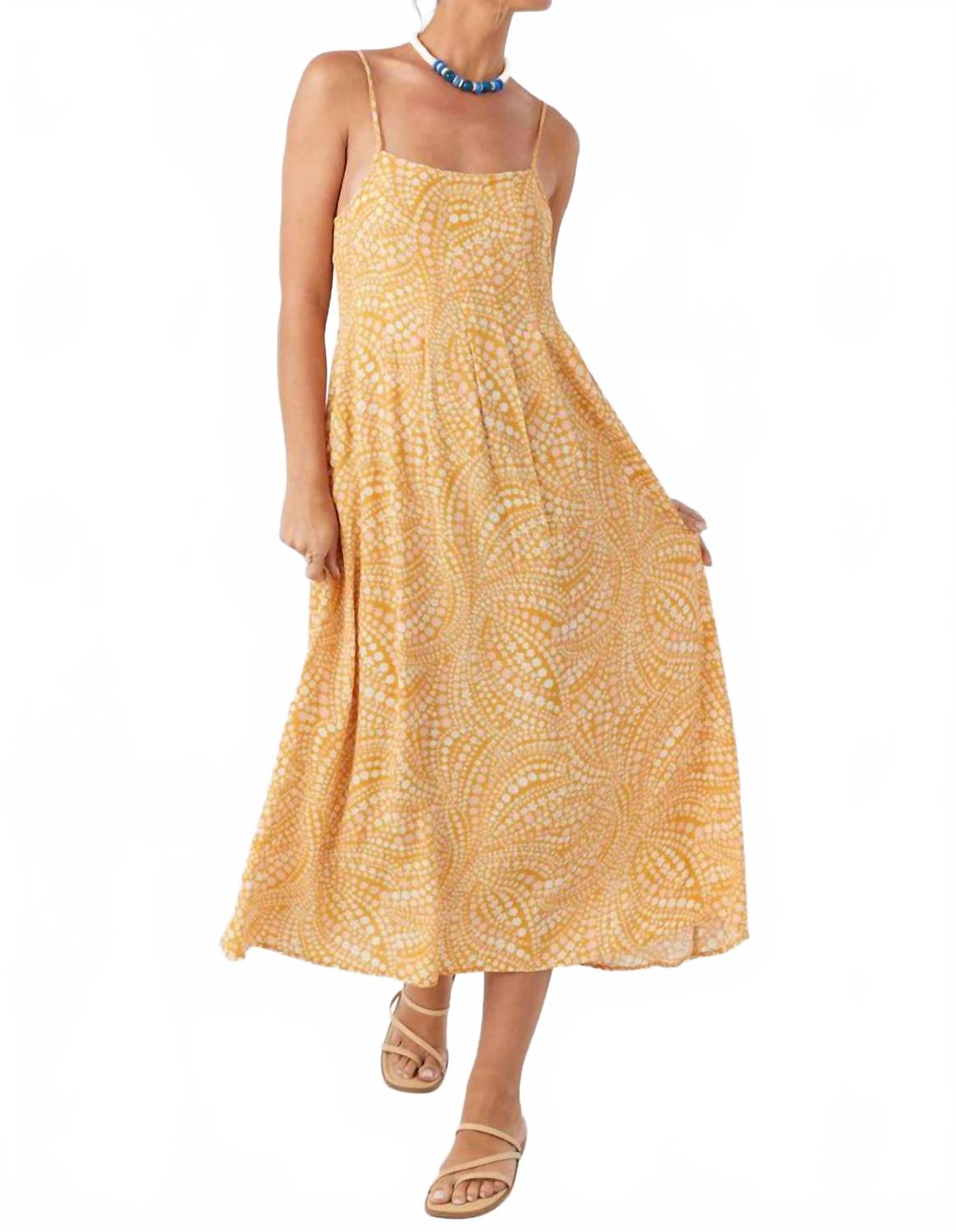 Просто добавьте шлепанцы или мюли, и все готово. Представляем женское платье Lailey от O'Neill сияющего золотого оттенка, идеально подходящее для пляжного отдыха в стиле бохо-шик или для пасхального торжества. Это платье миди с тонкими бретельками и квадратным вырезом, выполненное из 100% вискозного крепа, обеспечивает струящуюся и комфортную посадку. Длина платья - 40 дюймов, а потайная молния сзади создает идеальный образ. Это платье идеально подходит для стильного весеннего настроения, сочетая в себе комфорт и модные тенденции.