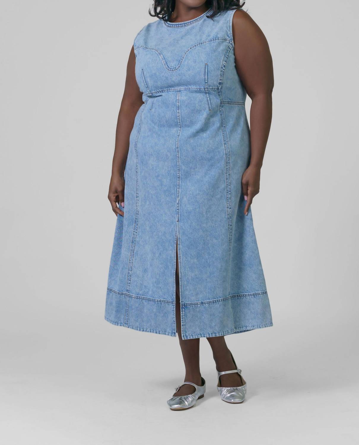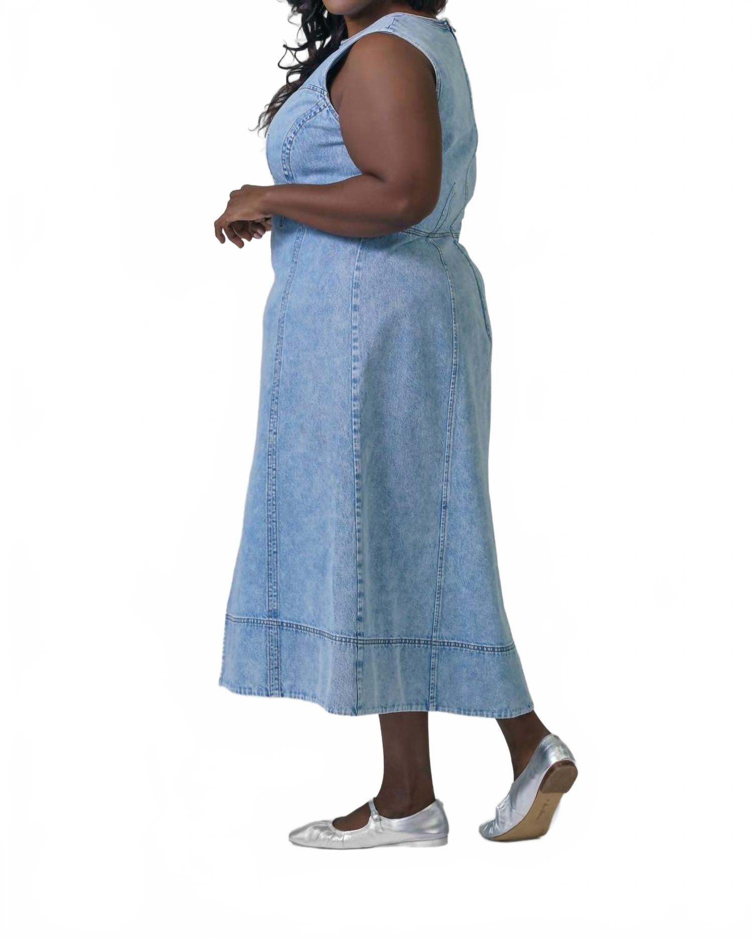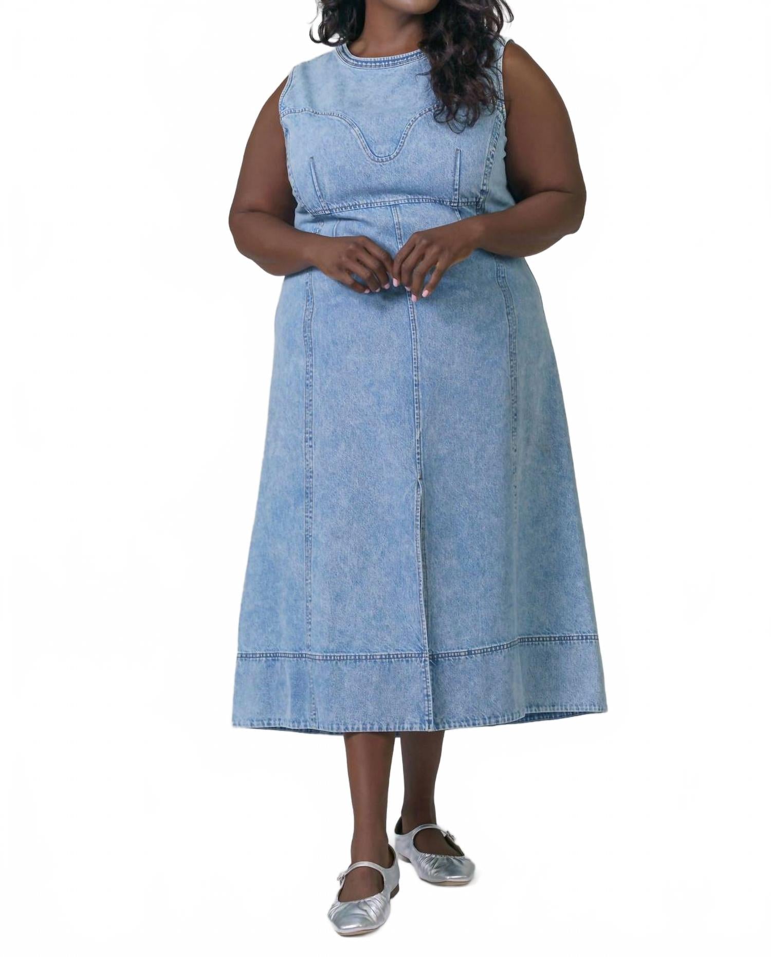 Просто добавьте шлепанцы или мюли, и все готово. Встречайте платье-миди Marion от TANYA TAYLOR - потрясающее платье А-силуэта без рукавов, воплощающее в себе непреходящую моду 90-х. Это универсальное платье из хлопка цвета индиго с насыщенным синим оттенком имеет лиф в форме сердечка и разрез по центру спереди, подчеркивающий фигуру и обеспечивающий комфорт. Это платье plus-size с круглым вырезом без застежек создано для непринужденной элегантности и идеально подходит для весенних путешествий. Уход: машинная стирка и сушка на веревке.
