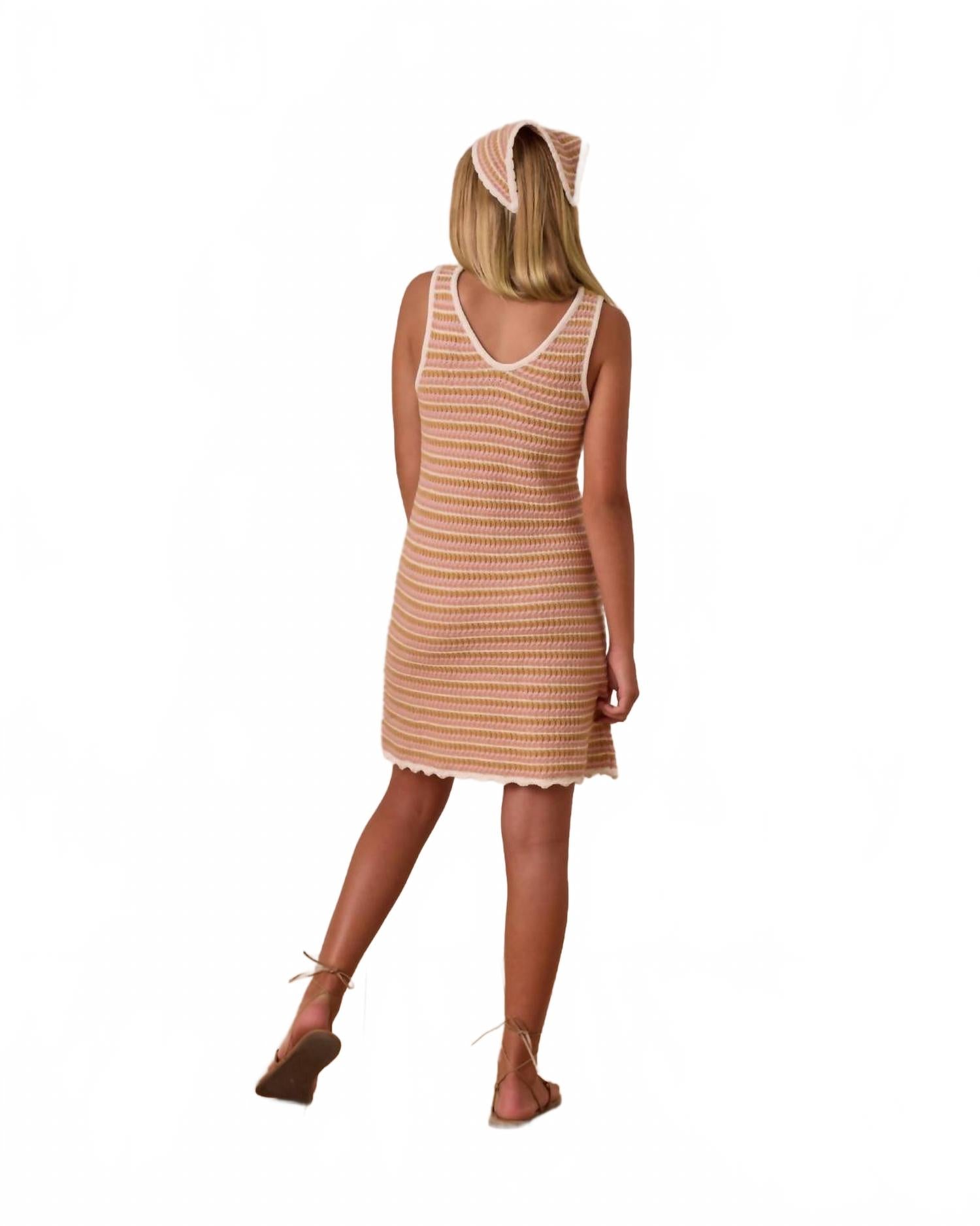 Короткое и воздушное платье для теплых дней. Представляем мини-платье Teens Crochet Tank Mini Dress от Rylee + Cru, идеально подходящее для стильного отпуска или праздничного времяпрепровождения. Это платье-футляр без рукавов с V-образным вырезом украшено стильными полосками розового, оранжевого и кремового оттенков, которые подчеркнут любую фигуру. Платье полностью изготовлено из дышащего хлопка и обеспечит комфорт в летние дни. Благодаря застежке-липучке, платье легко надевать. Стирать вручную и сушить на горизонтальной поверхности.