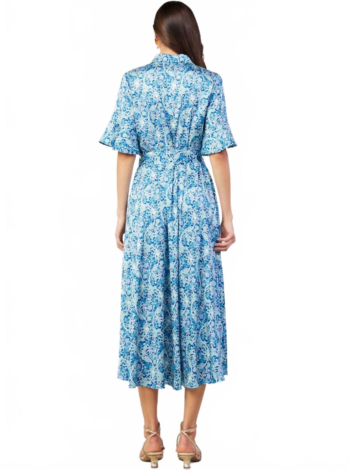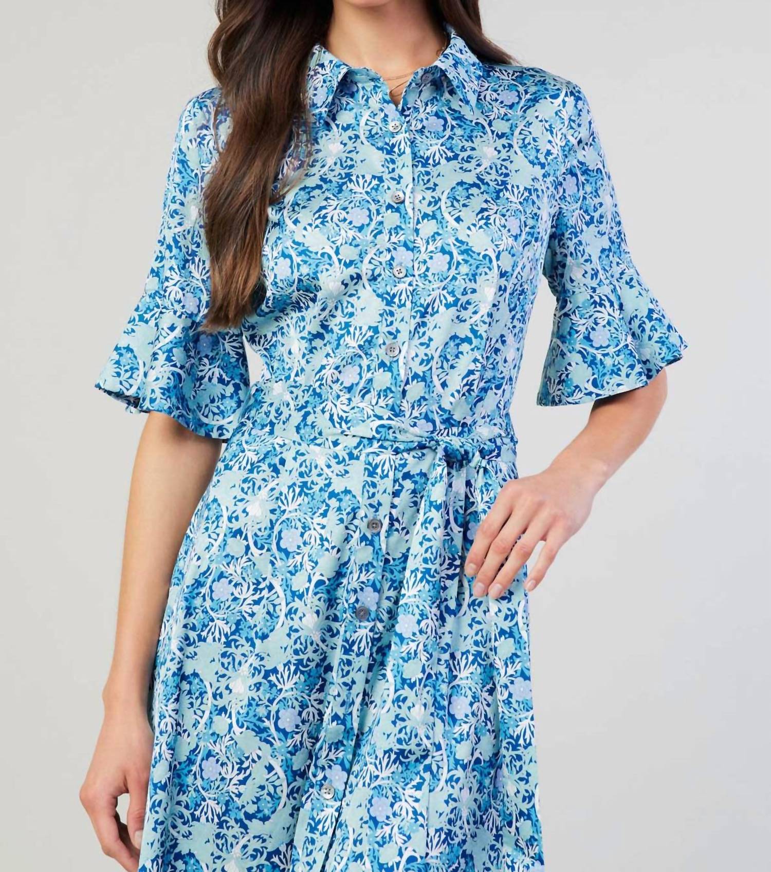 Bohemian Floral Printed Shirts Dress In Blue Current air