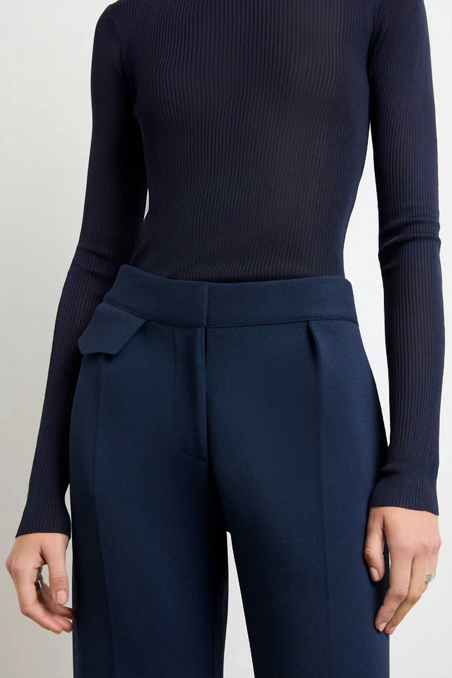 Сидячие вязаные брюки Cecily в темно-синем цвете Brandon Maxwell