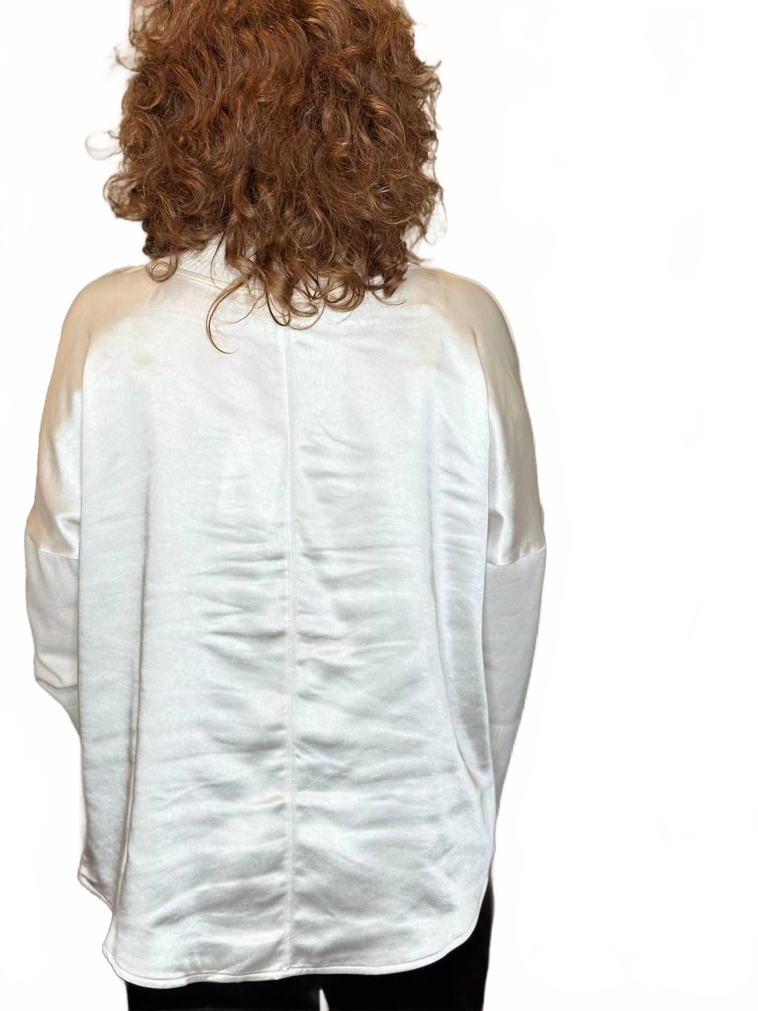 Сочетайте его с любимыми джинсами и шлепанцами для следующего девичника. Топ Norah от MELISSA NEPTON в цвете Off-White - изысканный выбор для любого гардероба. Эта женская блузка с длинными рукавами и шикарным воротником-стойкой выполнена из роскошного атласа и дополнена хлопковой резинкой на горловине и рукавах. Изготовленная из вискозной смеси, она имеет стильный асимметричный подол, добавляющий образу изысканности. Застежка: надевайте. Уход: ручная стирка и сушка на горизонтальной поверхности. Модель Кэтлин, рост 168 см, размер S.