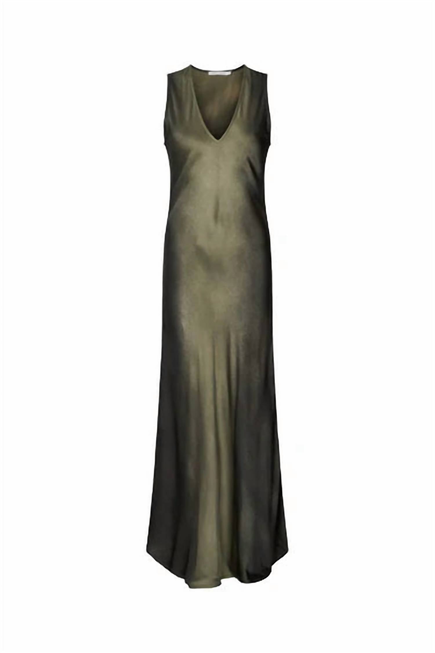 Дополните это макси-платье любимым эффектным ожерельем и босоножками для идеального образа. Представляем платье Graffiti Bias Dress от Rabens Saloner - изысканное изделие оливково-угольного цвета, идеально подходящее для вечерних мероприятий. Это макси-платье без рукавов с V-образным вырезом, бретелями средней ширины и расклешенным силуэтом. Изготовленное в Индонезии из нежной смеси вискозного эковеро (50% вискозы) и вискозного волокна (50% вискозы) каждое платье украшено уникальным узором, окрашенным вручную. Застежка - на застежку.