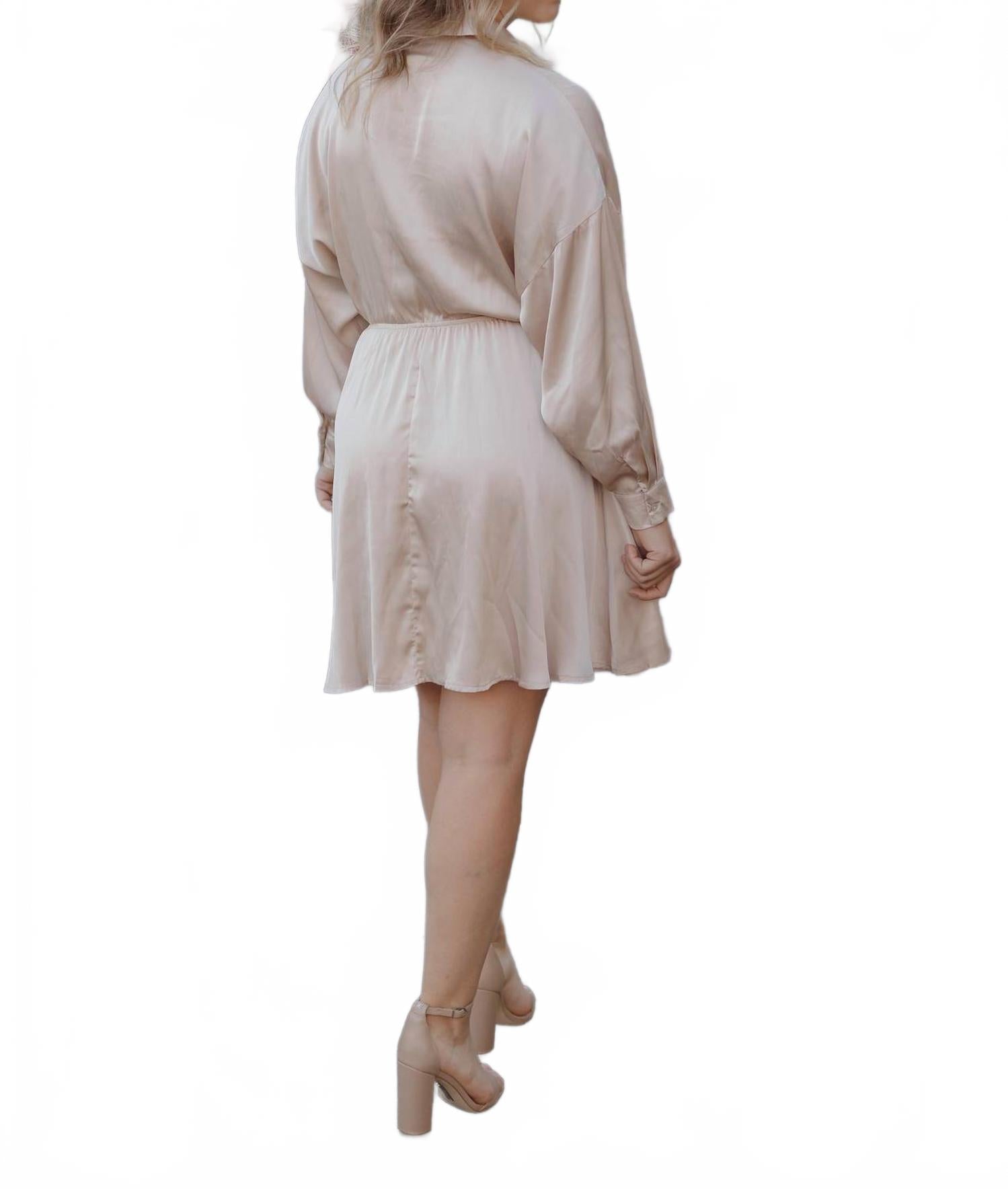 Представляем мини-платье Ariana с длинными рукавами от SHE + SKY - шикарное бежевое изделие, идеально подходящее для минималистичного образа. Это платье, выполненное в однотонном крое, отличается изысканным воротником и застежкой на пуговицы, что создает изысканный образ. Свободный крой и эластичная резинка на талии обеспечивают комфорт и стиль, а длинные рукава идеально подходят для званого ужина в честь Дня благодарения. Платье имеет А-образный силуэт без карманов.