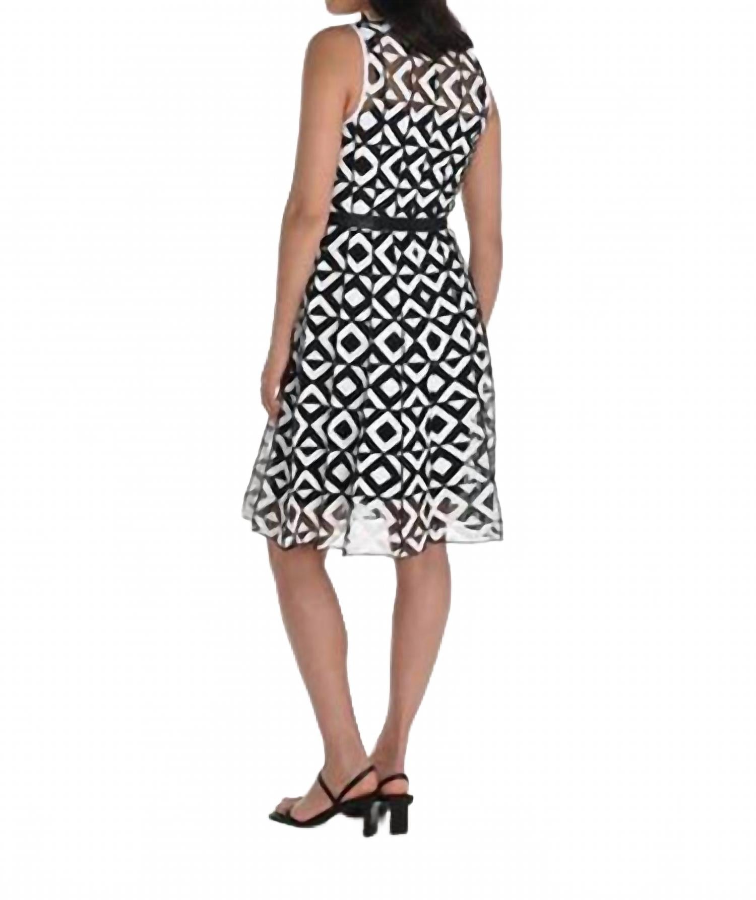 Геометрическое кружевное платье в черно-белом цвете Frank Lyman