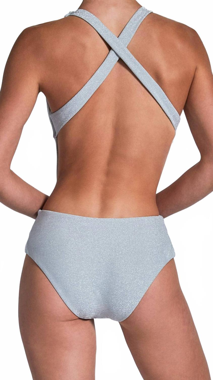 Этот женский слитный купальник с открытым V-образным вырезом и высоким вырезом на штанине, регулируемой перекрученной резинкой, а также открытой спиной для дополнительной привлекательности. Изготовлен из смеси 65% нейлона, 30% металлизированного волокна и 5% спандекса, с подкладкой из 88% нейлона и 12% спандекса. Он обеспечивает комфортную эластичность и блеск. Ручная стирка в холодной воде, сушка в тени. Рост модели 168 см, размер S.