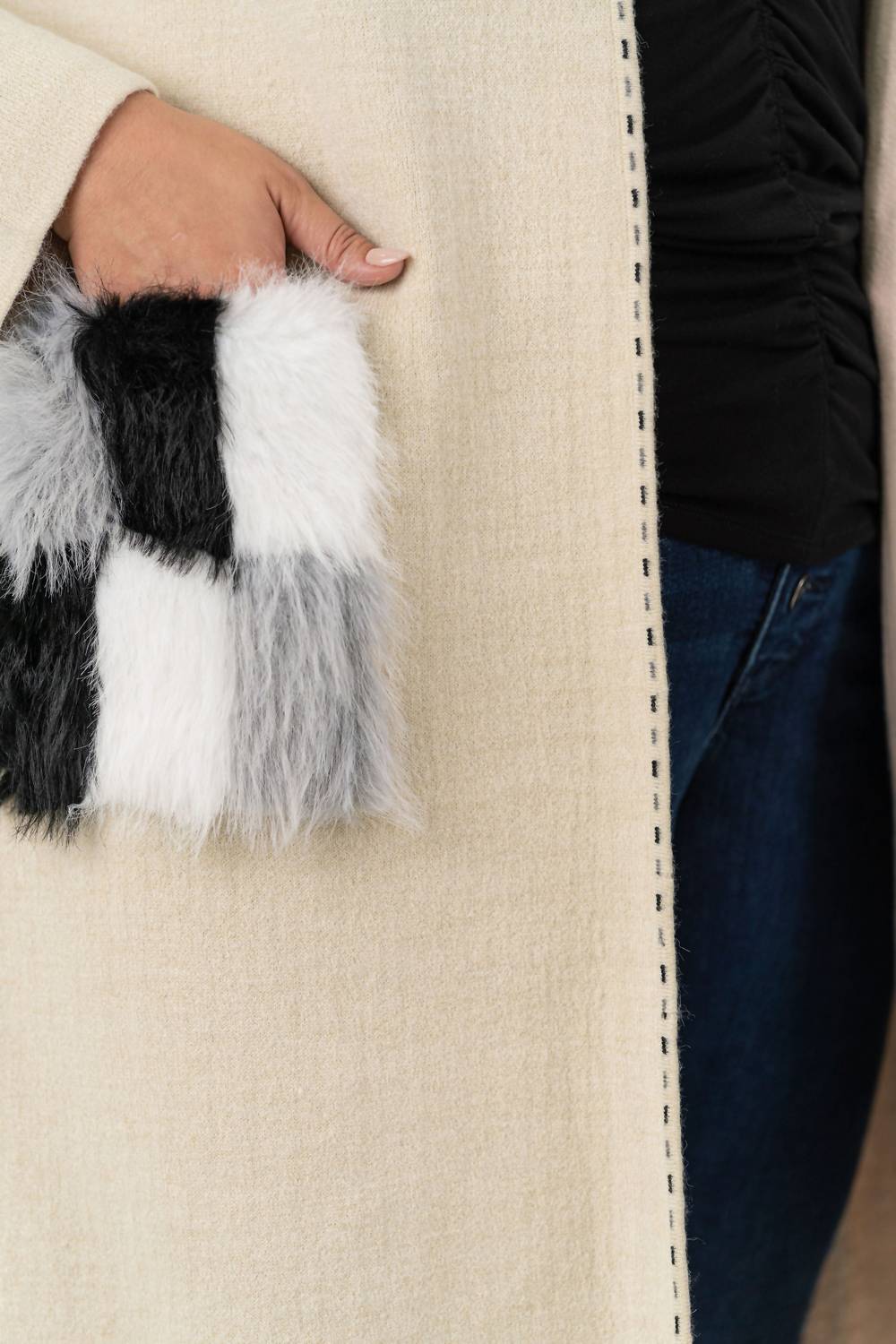 Классический шик, этот тренчкот никогда не выйдет из моды. Представляем пальто Stella Hooded Coat от Joh - минималистичный шедевр, идеально подходящий для Дня благодарения и зимних ужинов. Этот женский тренчкот из однотонного бежевого искусственного меха с длинными рукавами и карманами, отделанными искусственным мехом, обеспечивает тепло и стиль. С капюшоном и практичной застежкой-липучкой, пальто полностью на подкладке для комфорта. Уход за ним прост: машинная стирка и сушка в стиральной машине гарантируют легкость использования.