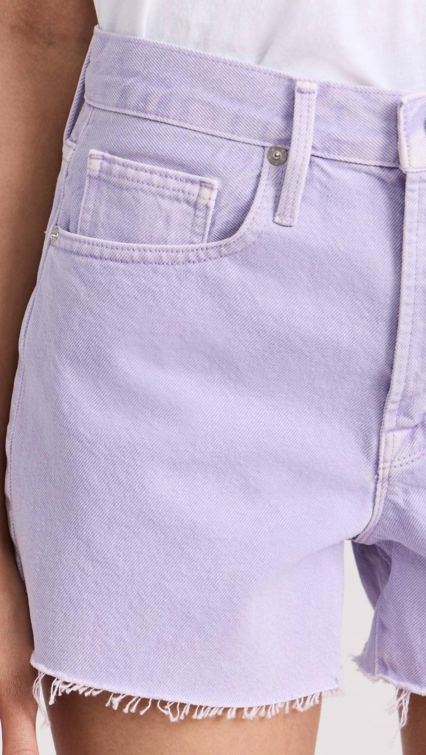 Джинсовых шорт много не бывает, и эти шорты станут вашими новыми фаворитами. Представляем шорты FRAME Le Brigette Raw Shorts освежающего сиреневого оттенка, идеально подходящие для лета. Эти шорты из легкого, неэластичного 100% хлопкового денима имеют необработанный бахромчатый край и косые карманы на бедрах, а также накладные карманы сзади. Застежка на пуговицу и молнию, придающие модели практичность и элегантность, привезенные из Парагвая. Уход за этой вещью прост: стирайте в стиральной машине. Длина внутреннего шва - 3,5 дюйма.