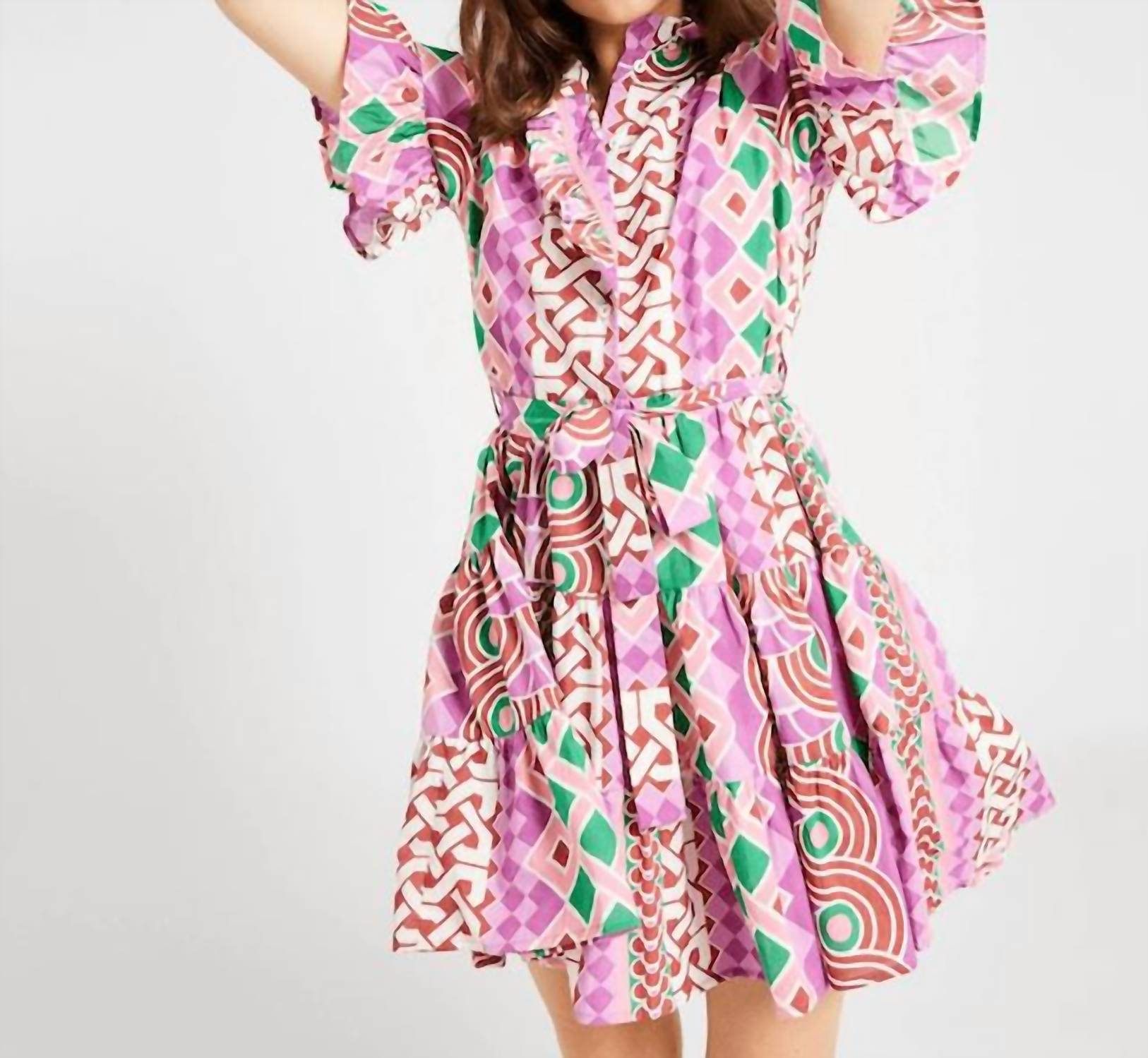 Свободное и элегантное платье, которое вы будете носить круглый год. Представляем платье Violetta от MILLE - восхитительную мини-версию любимого платья Victoria в цвете Casa. Это летнее платье А-силуэта с короткими рукавами и застежкой на пуговицы дополнено очаровательной планкой с рюшами и рукавами. Платье из мягкого хлопка отличается непринужденным стилем благодаря многоярусной струящейся юбке и поясу на талии. Это платье, созданное с любовью в Джайпуре, идеально подходит для особых случаев, таких как День матери и дни рождения.